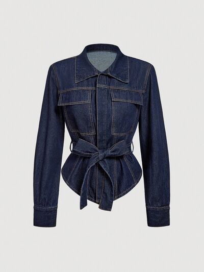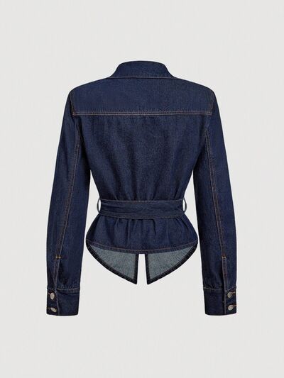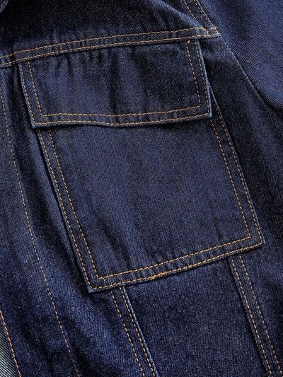 Full Size Pearl Detail Button Up Long Sleeve Denim Jacket Plus Size