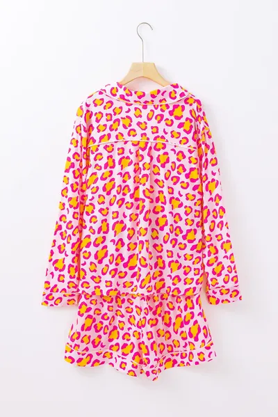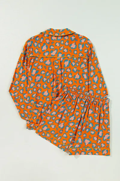 Color Block Patchwork Textured Long Sleeve Top and Short Lounge Set
