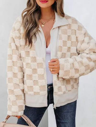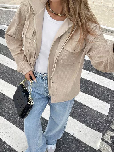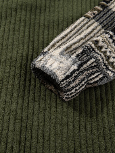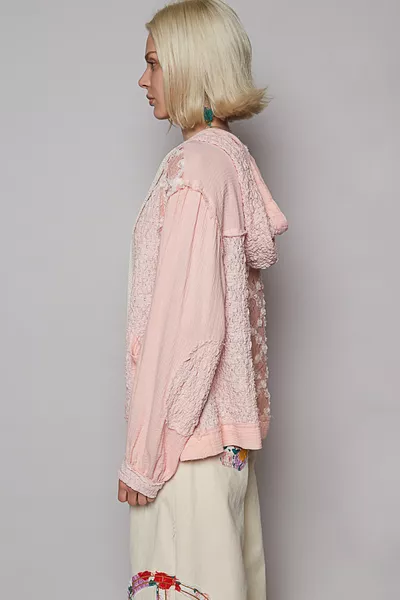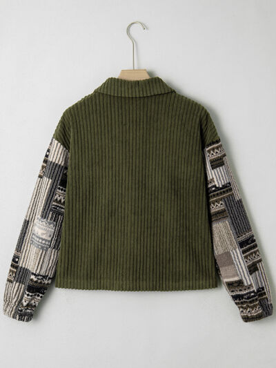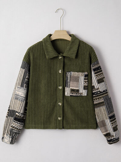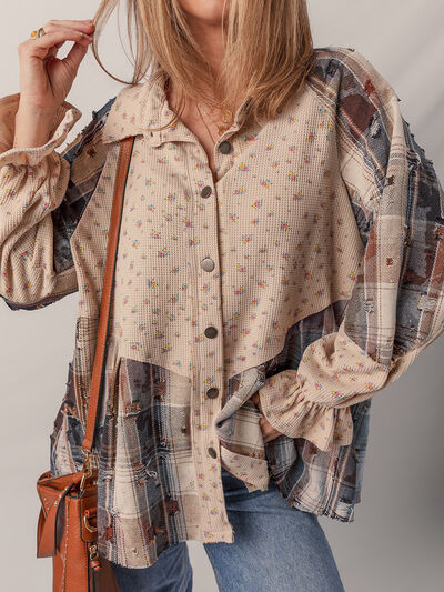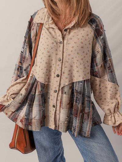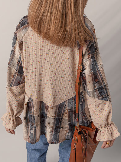 Boho Floral Plaid Patchwork Distressed Detail Ruffled Sleeve Waffle Knit Shacket