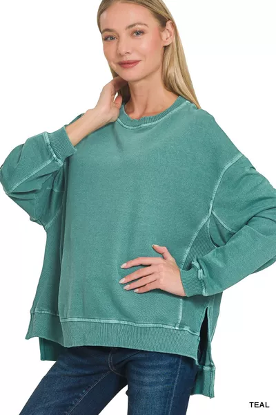 Zenana Full Size Fleece Hi-low Boyfriend Sweatshirts with Pockets Plus Size