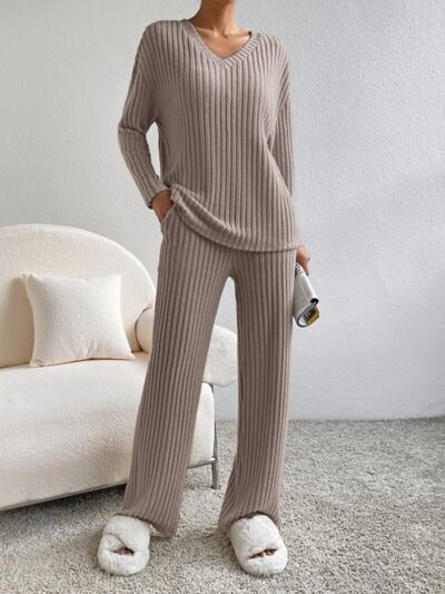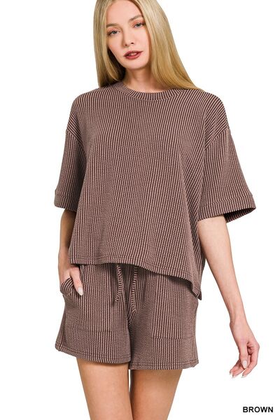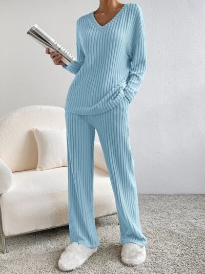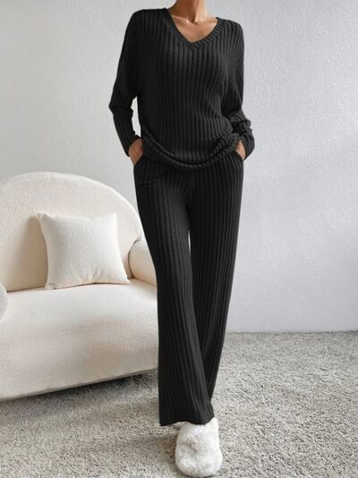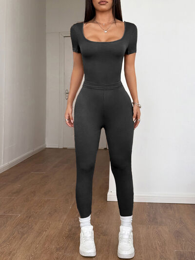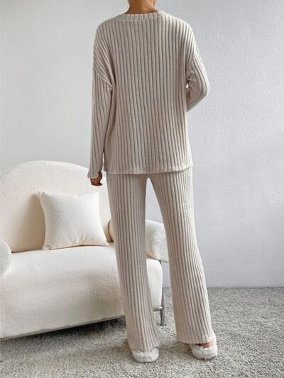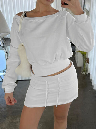 Full Size Boat Neck Crop Top & Wide Leg Pants Set Plus Size