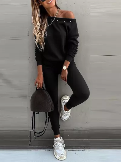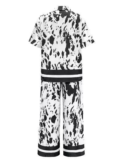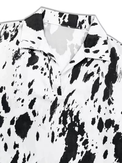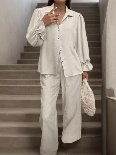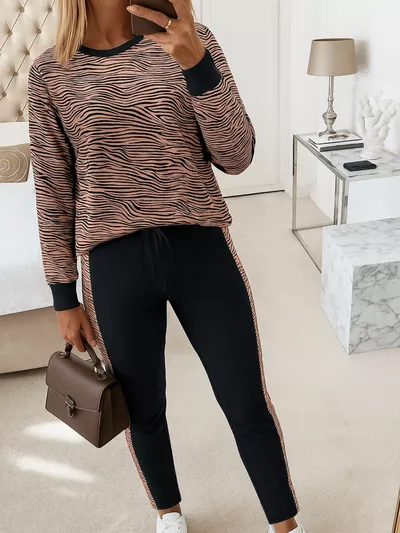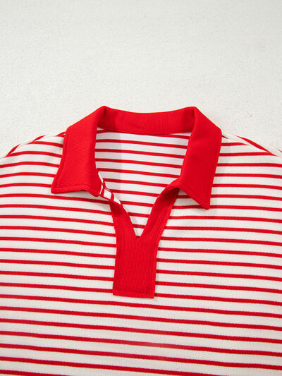 Stripe Collared V Neck Drop Shoulder Pullover and Skort 2pcs Outfit
