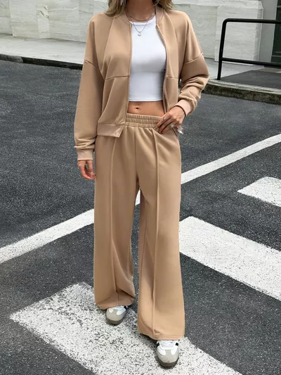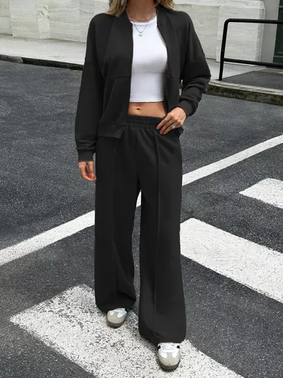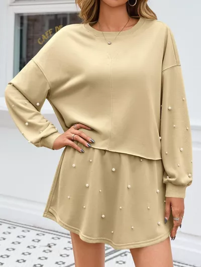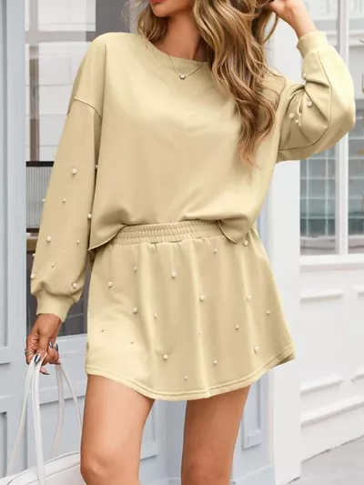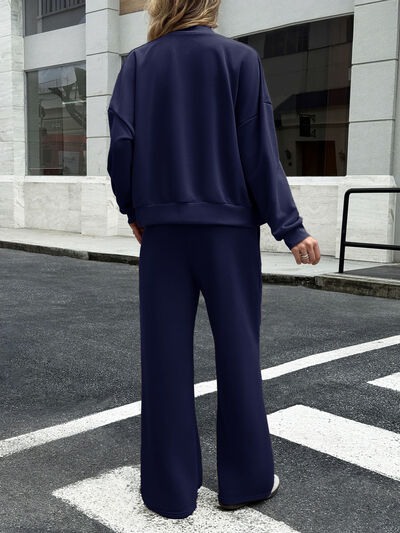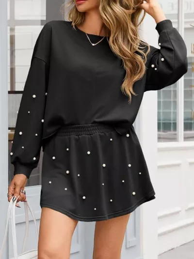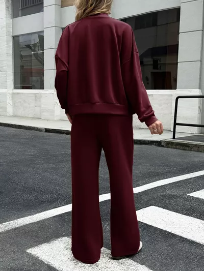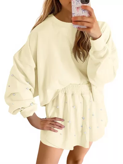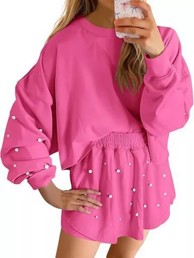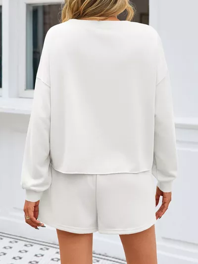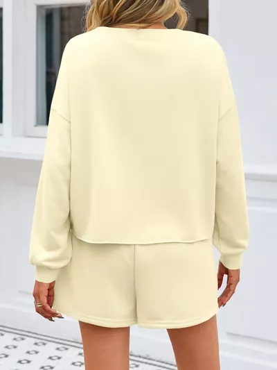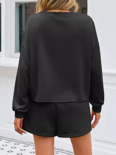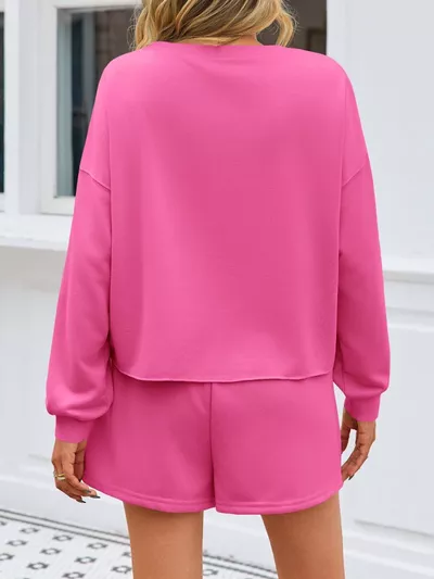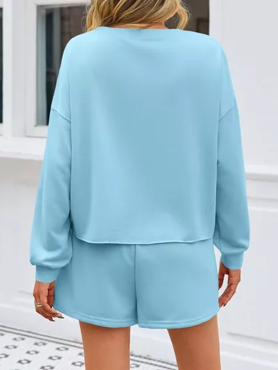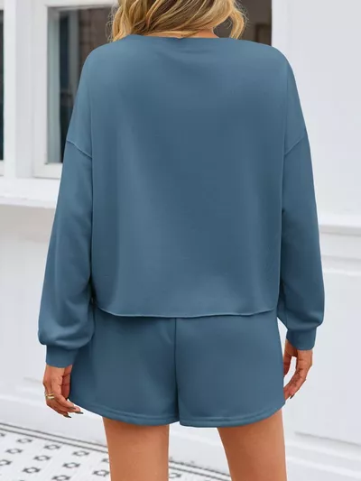 Color Block Patchwork Textured Long Sleeve Top and Short Lounge Set
