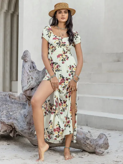 Ruffled Surplice Tie Waist Slit Midi Dress
