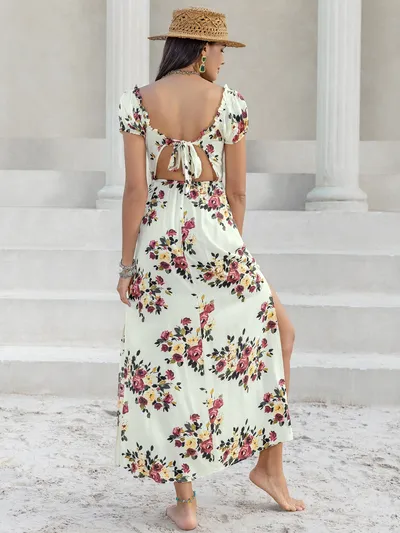Culture Code Backless Plunge Half Sleeve Tiered Dress