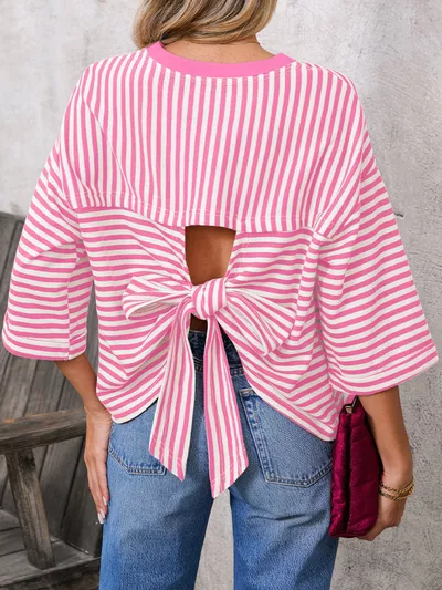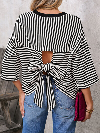 Striped Back Bow Tie T-Shirt
