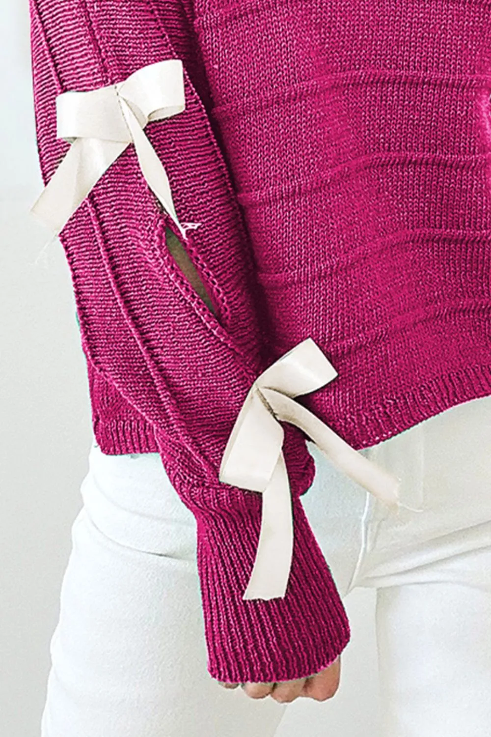 Bow Cutout Round Neck Long Sleeve Knit Top