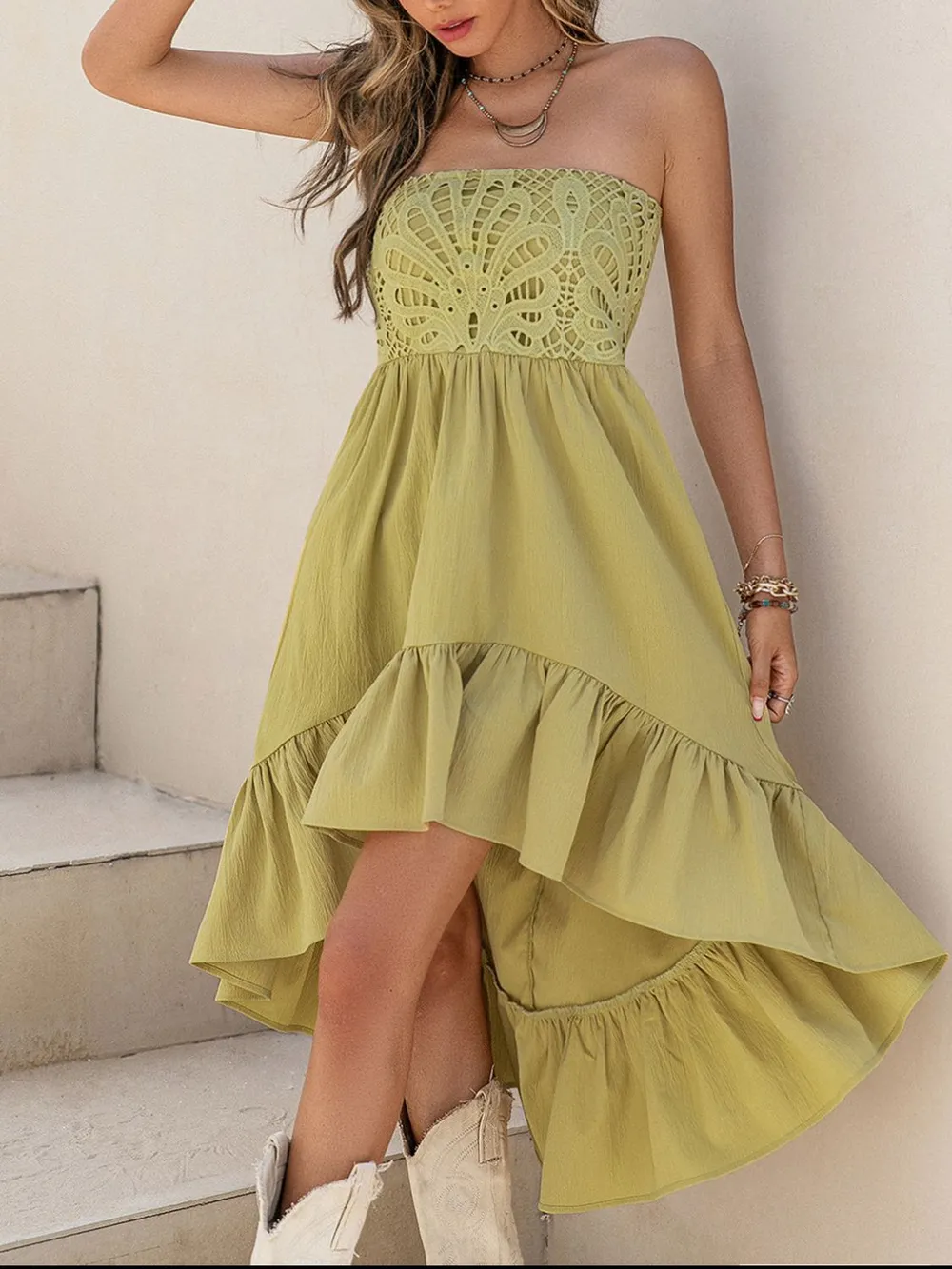 - Features: Lace Detail, Ruffled, Smocked