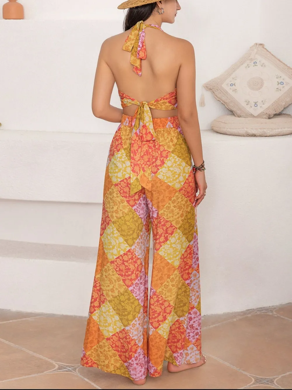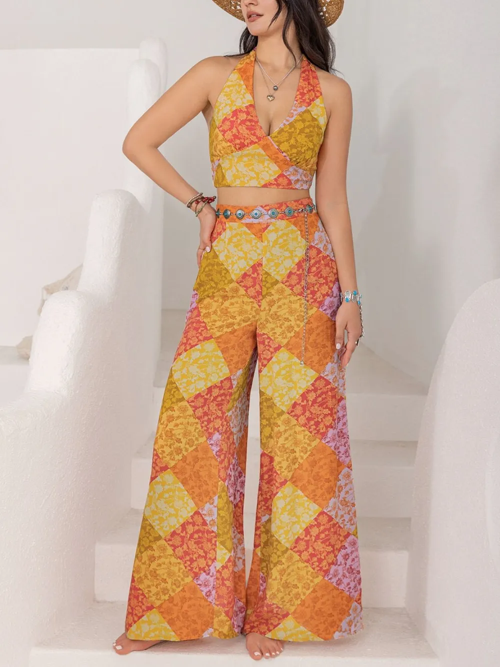 Halter Neck Top and Wide Leg Pants Set
