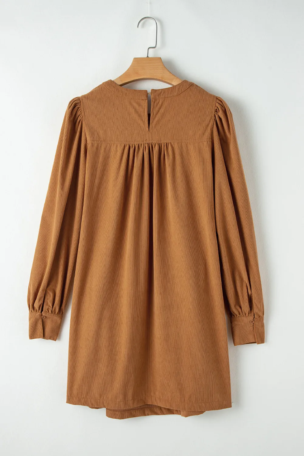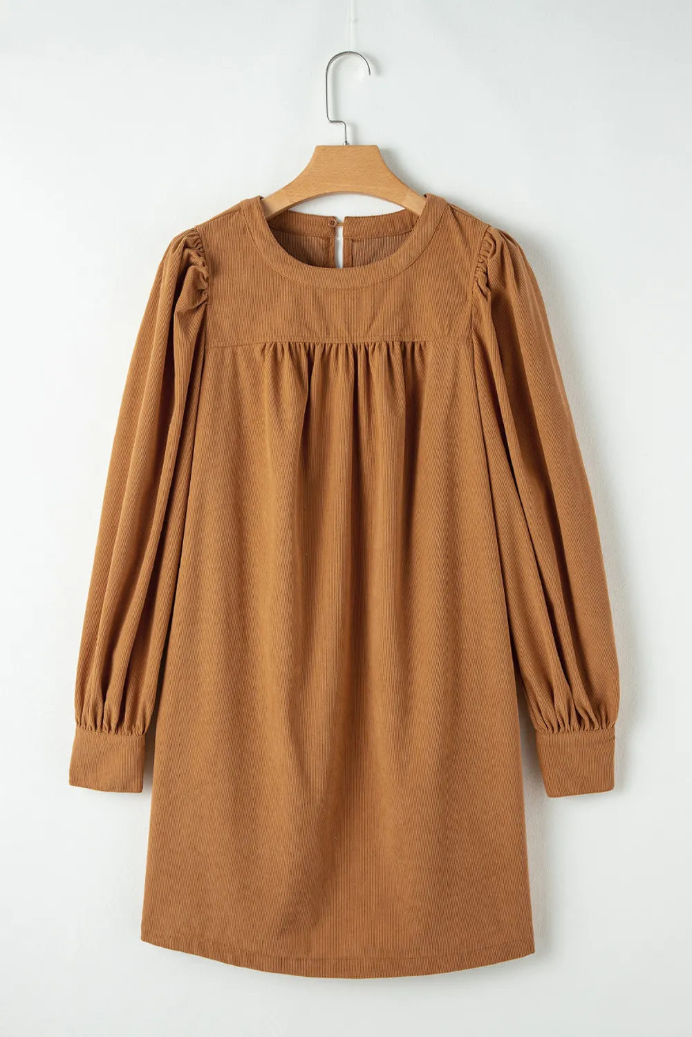 Ruched Round Neck Long Sleeve Dress
