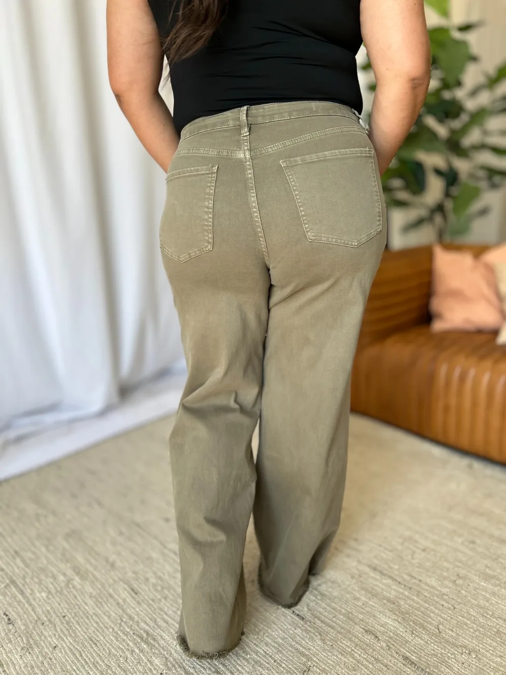 RFM Full Size High Rise Garment Dye Wide Leg Jeans