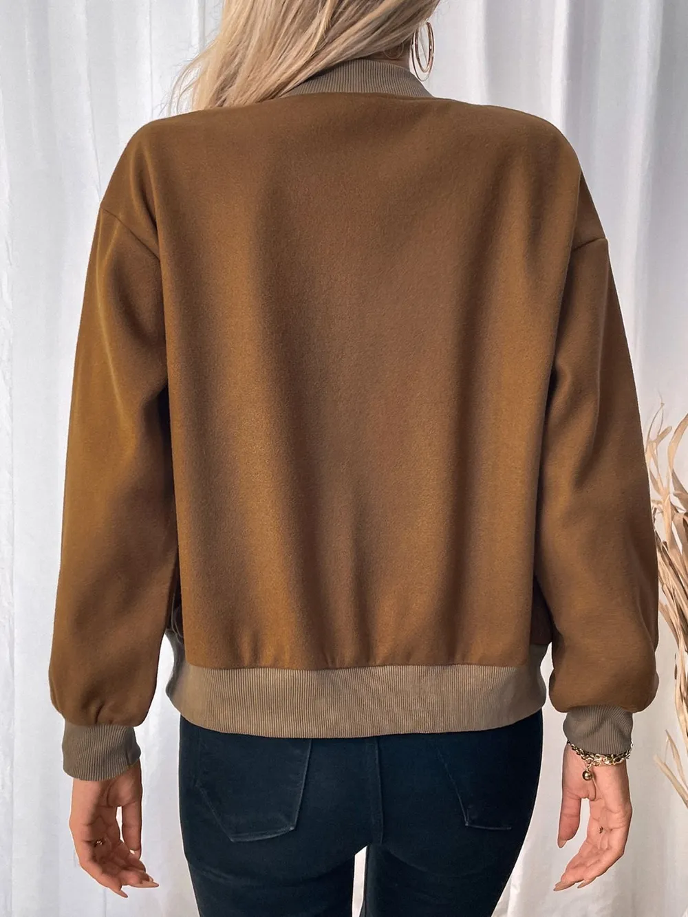 Perfee Baseball Collar Snap Down Long Sleeve Jacket