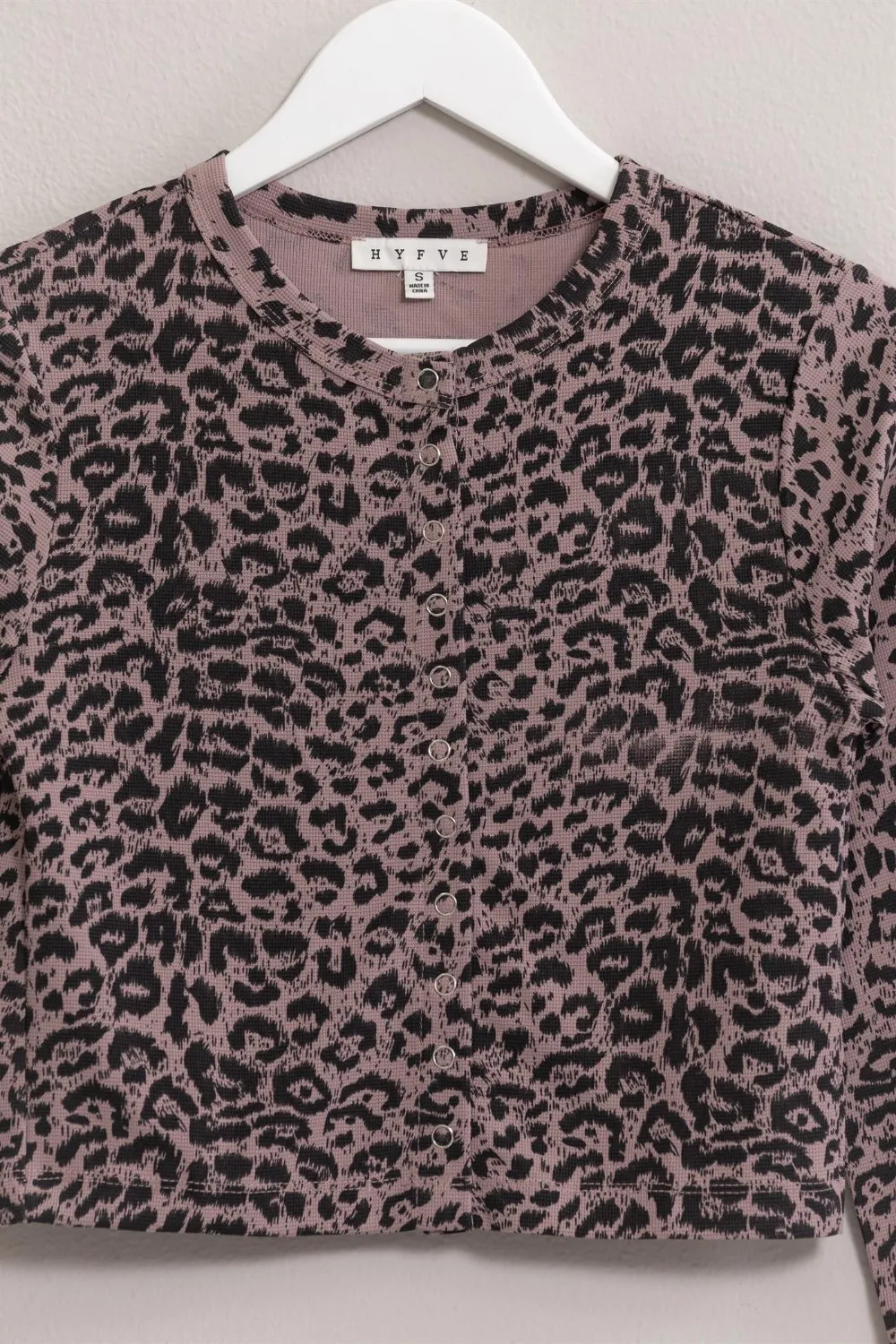 Detailed description of the HYFVE Animal Print Snap Down Crop Cardigan, highlighting quality, design, and unique features that make it appealing to end consumers.