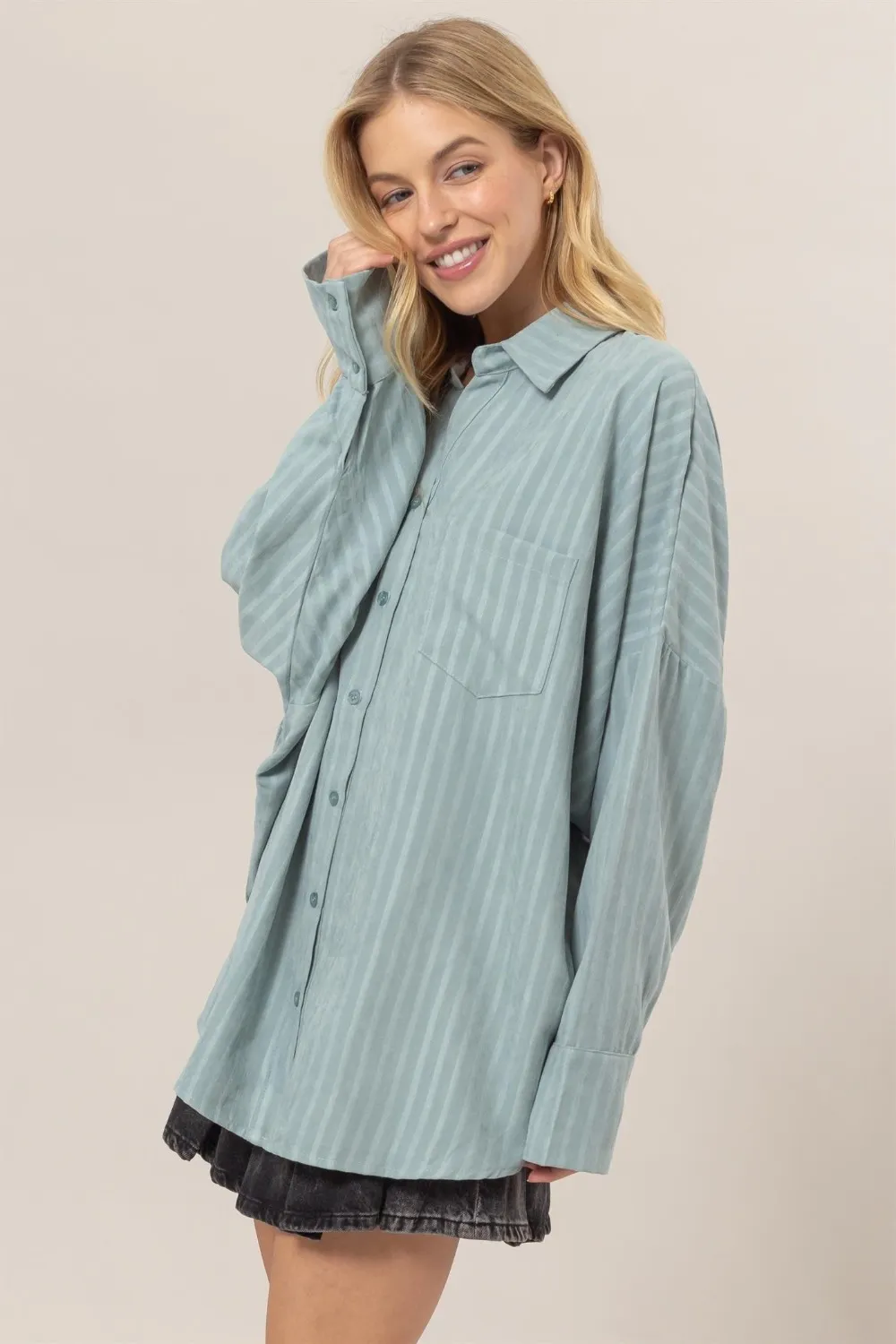 HYFVE Stripe Button Down Long Sleeve Oversized Shirt