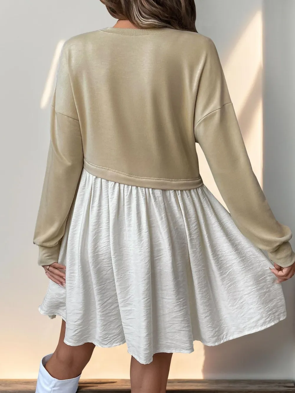Perfee Contrast Round Neck Long Sleeve Mini Dress
