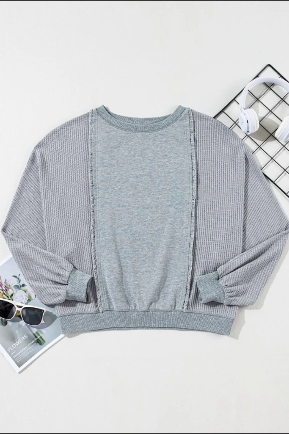 Raw Hem Round Neck Long Sleeve Sweatshirt