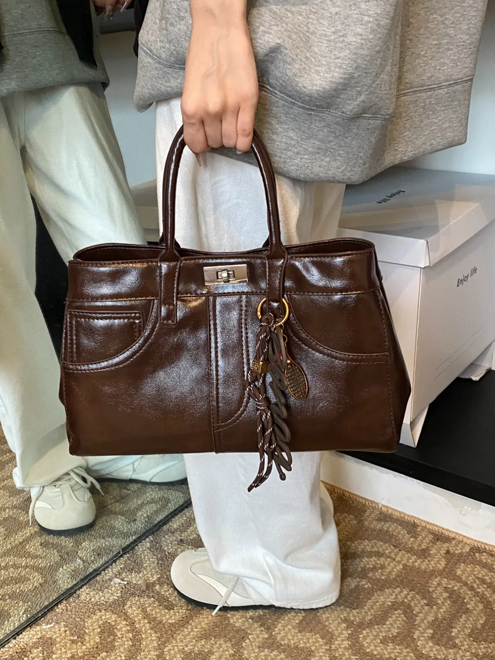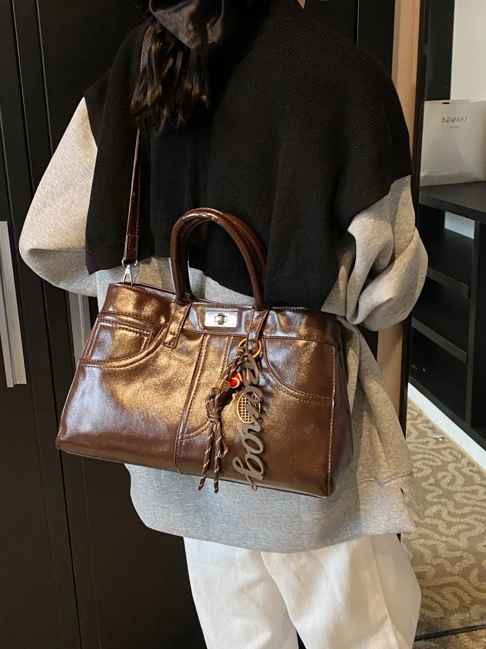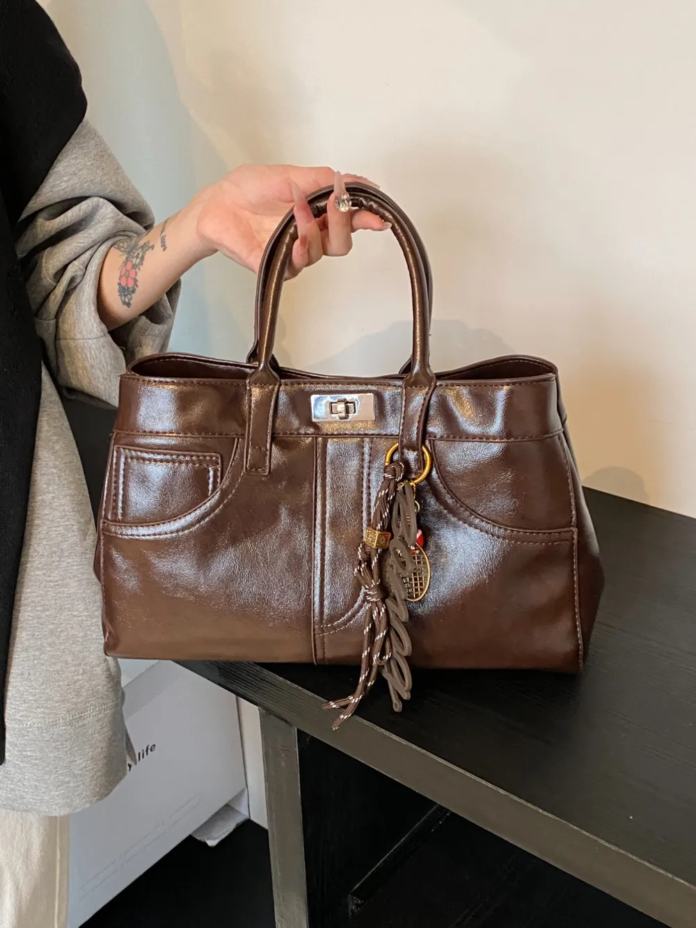 PU Leather Handbag with Pendant