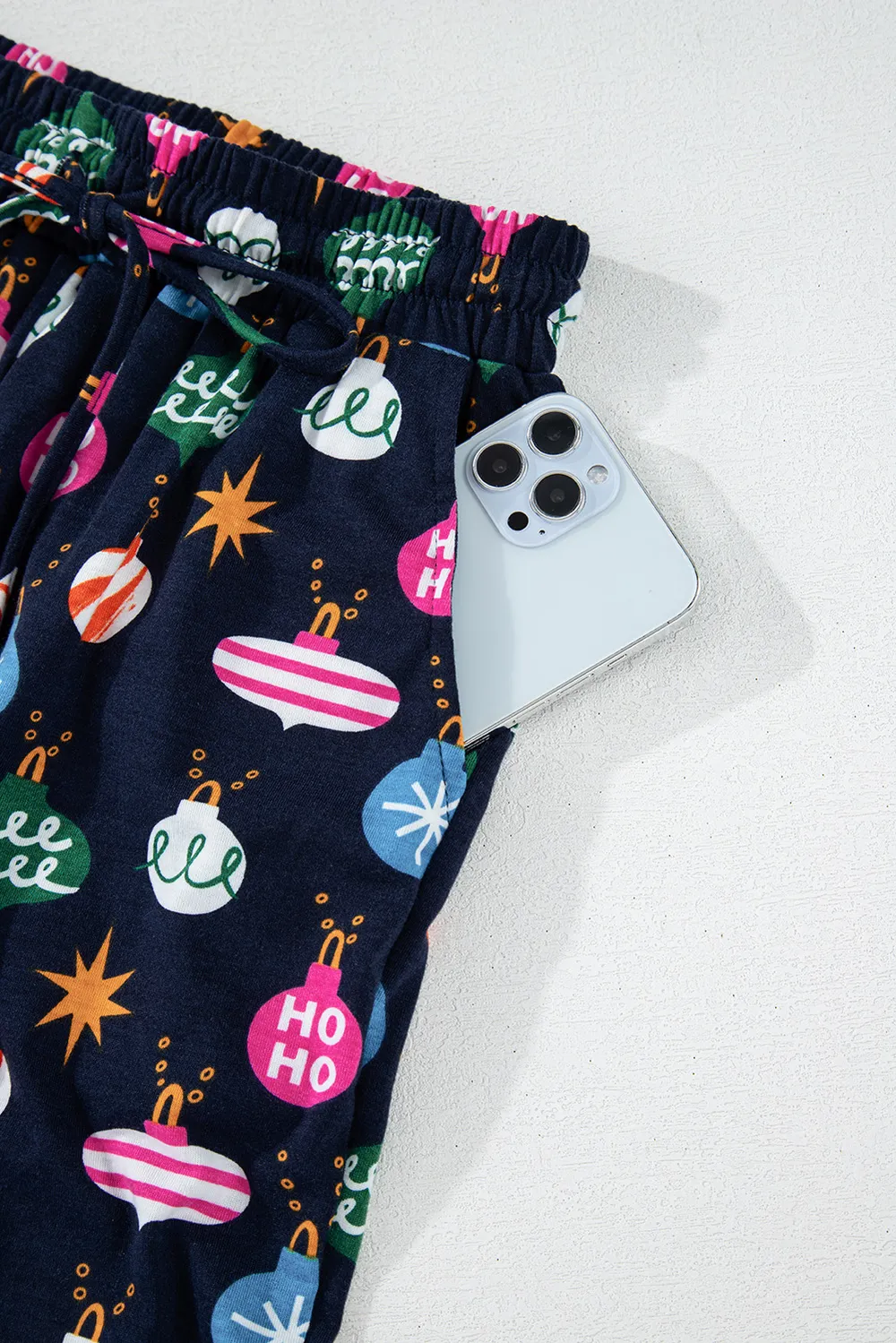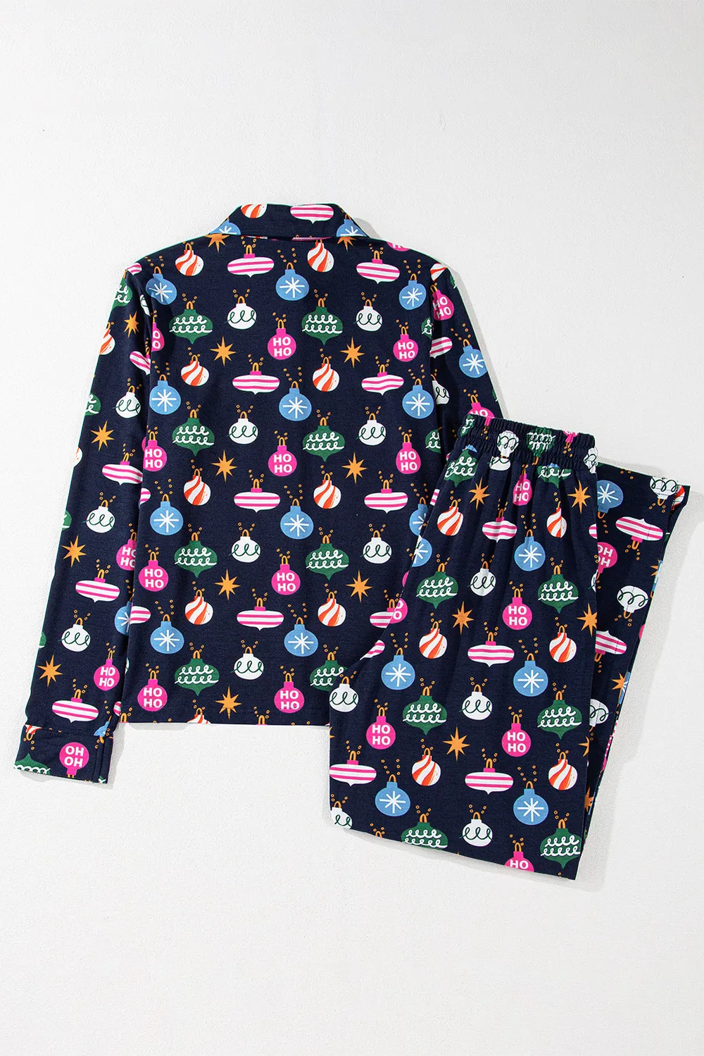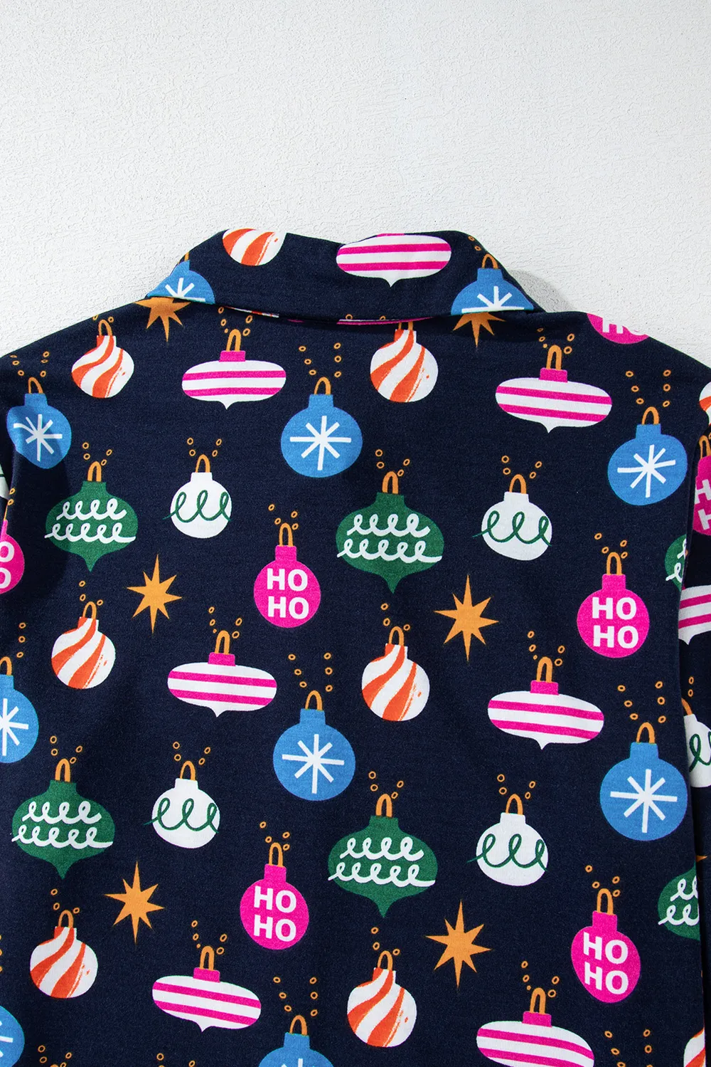 Christmas Lights Print Collared Neck Top and Pants Set