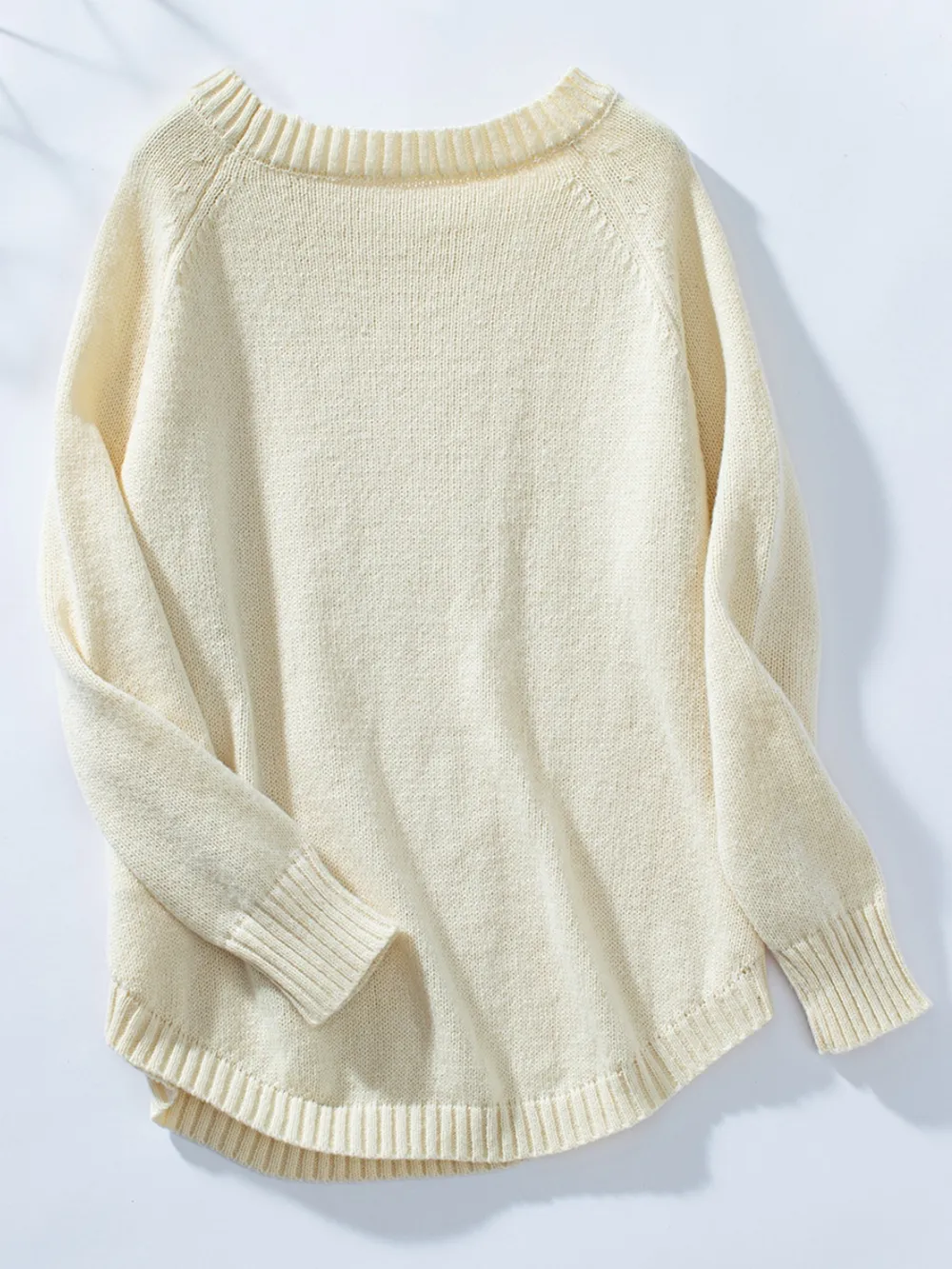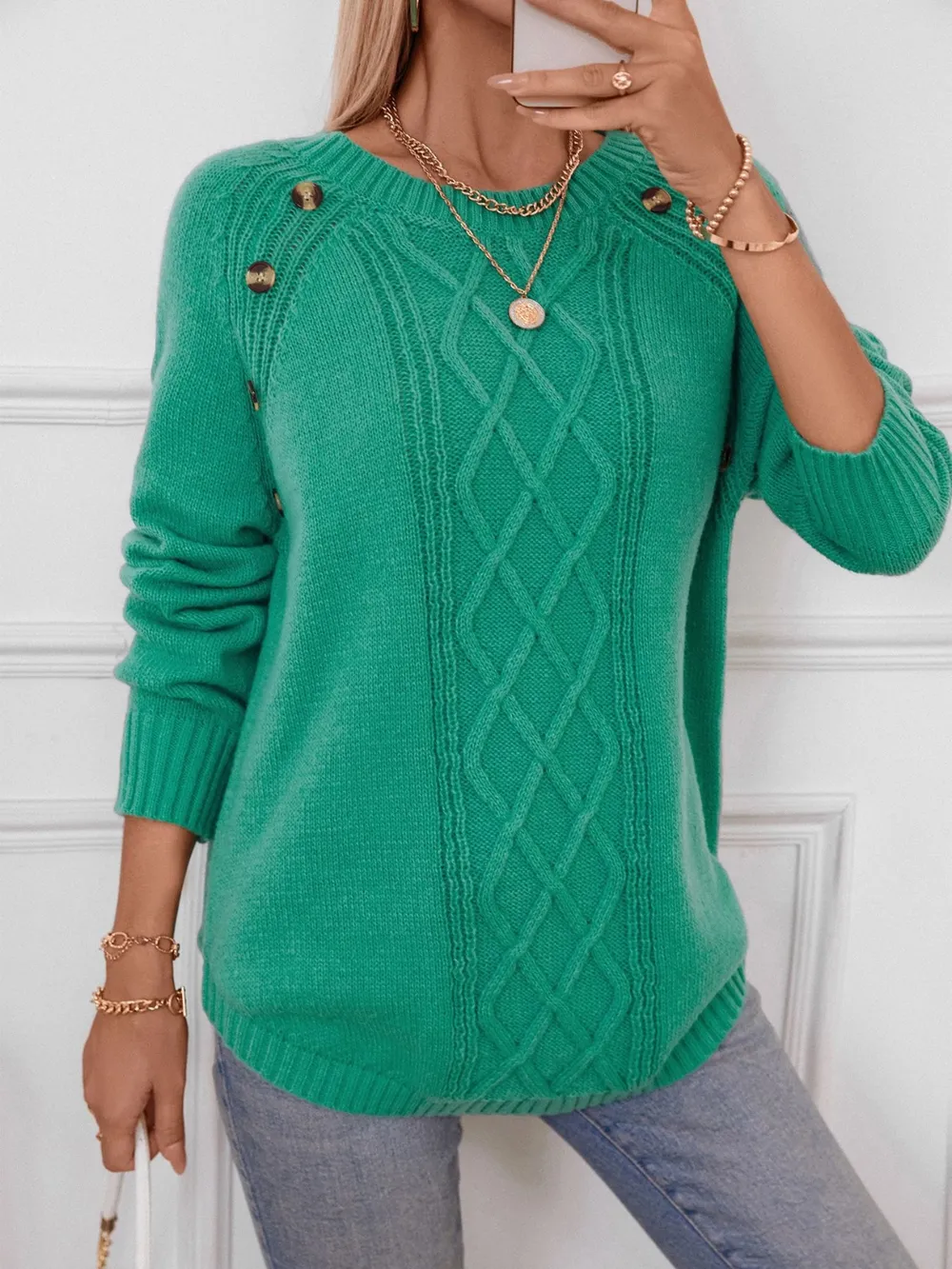 Decorative Button Round Neck Raglan Sleeve Sweater
