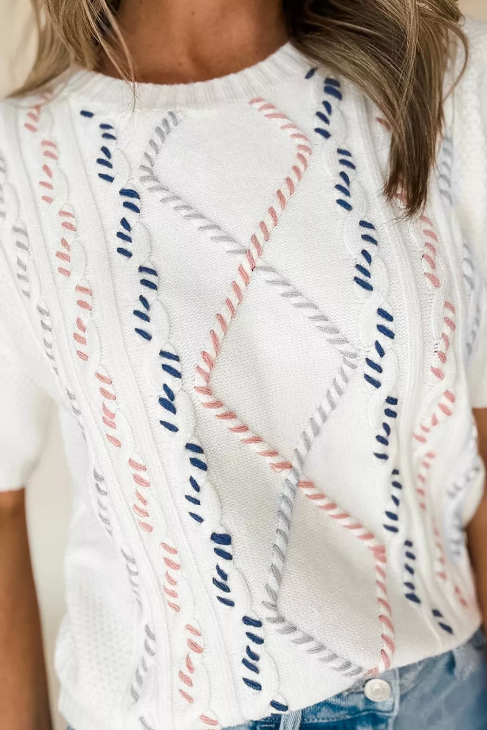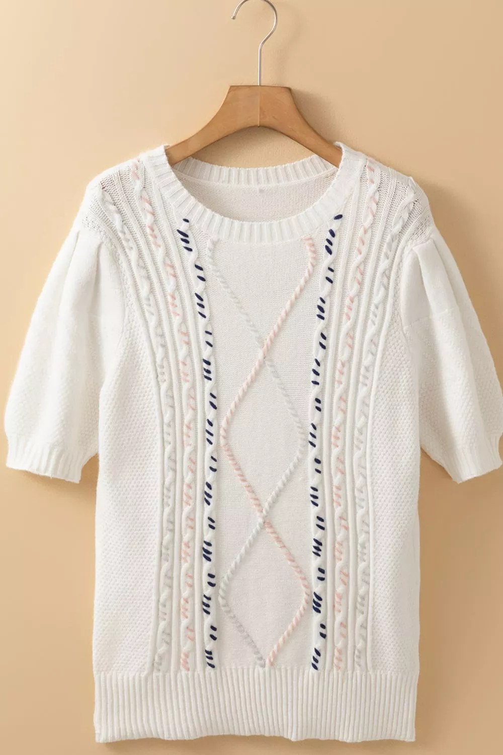 Cable Knit Round Neck Half Sleeve Sweater