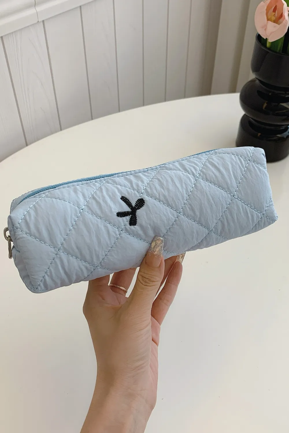 Bow Embroidered Quilted Storage Bag