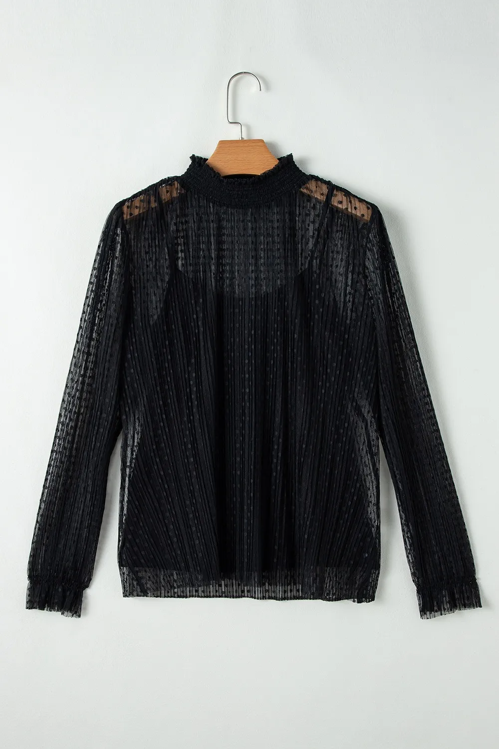 cami and Lace Sheer Mock Neck Long Sleeve Blouse