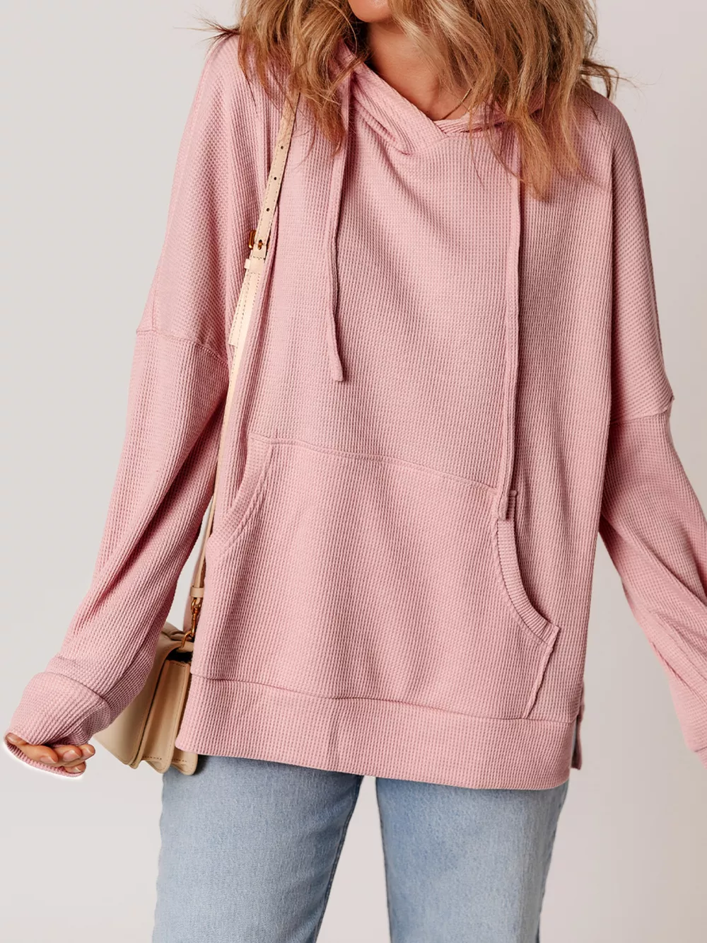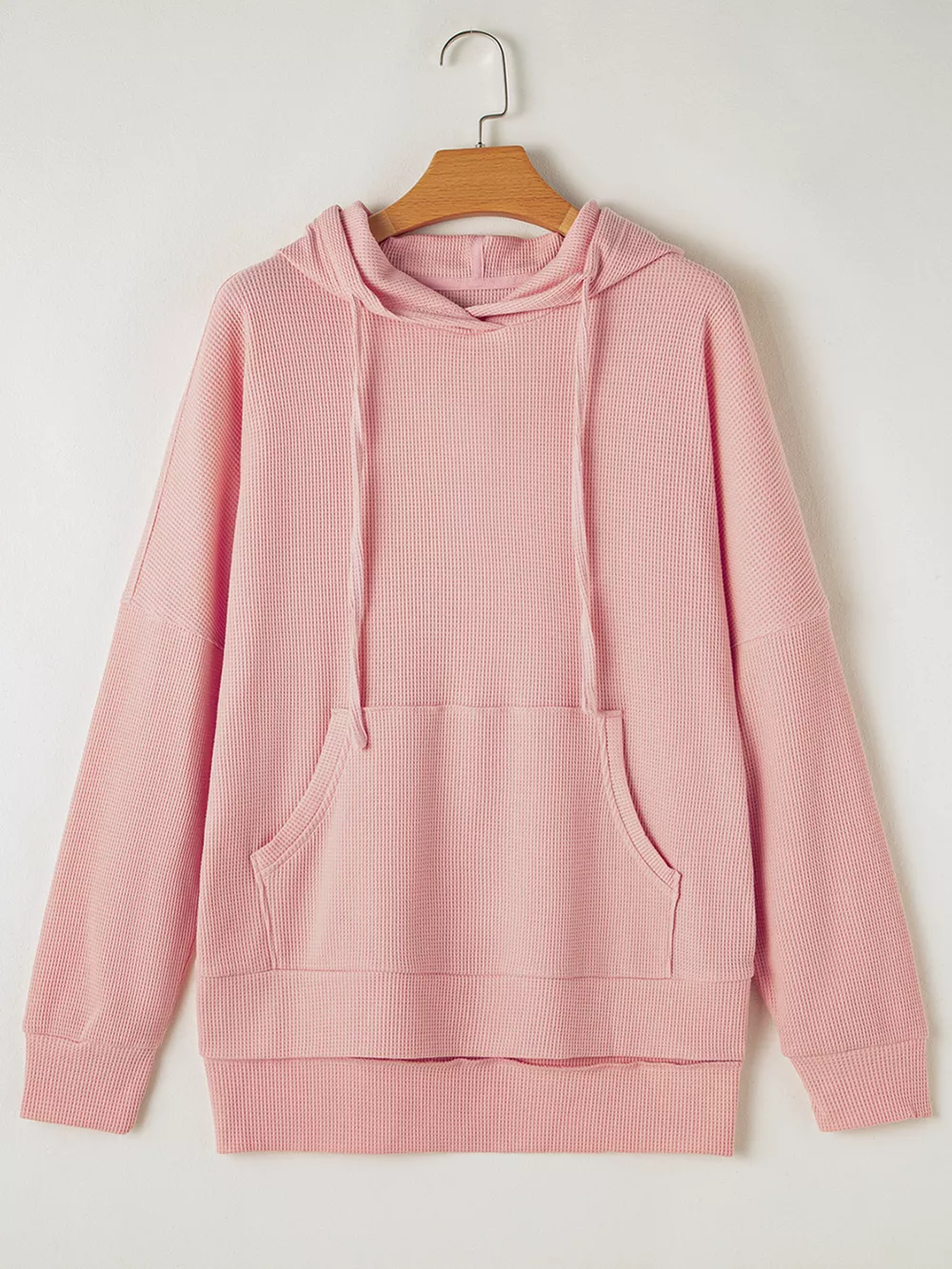 Waffle Knit Fleece Lined High Low Oversized Hoodie