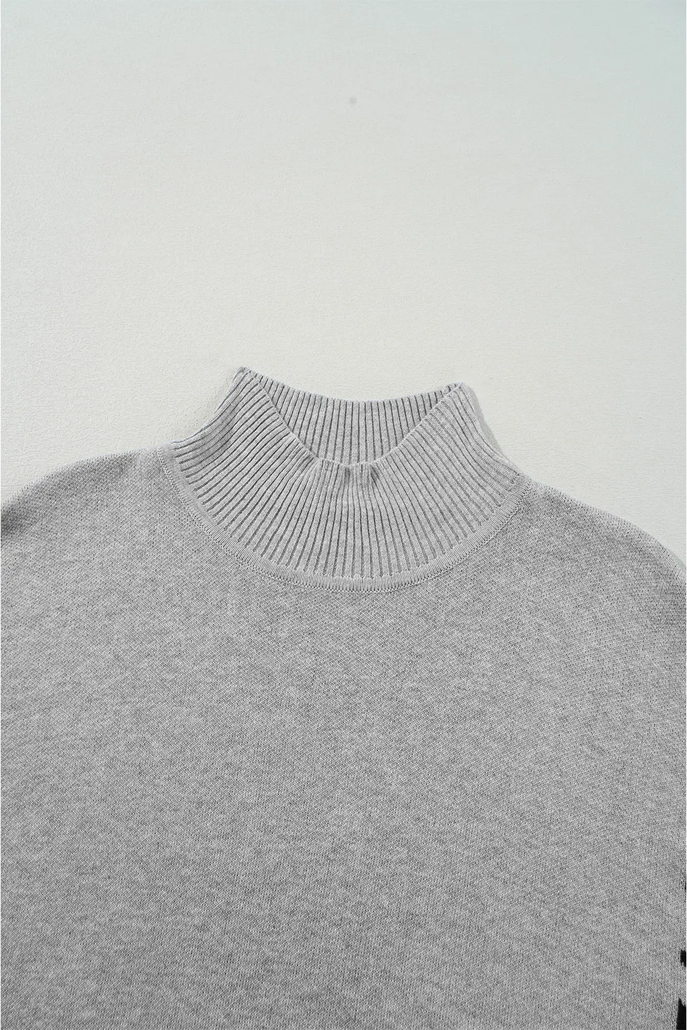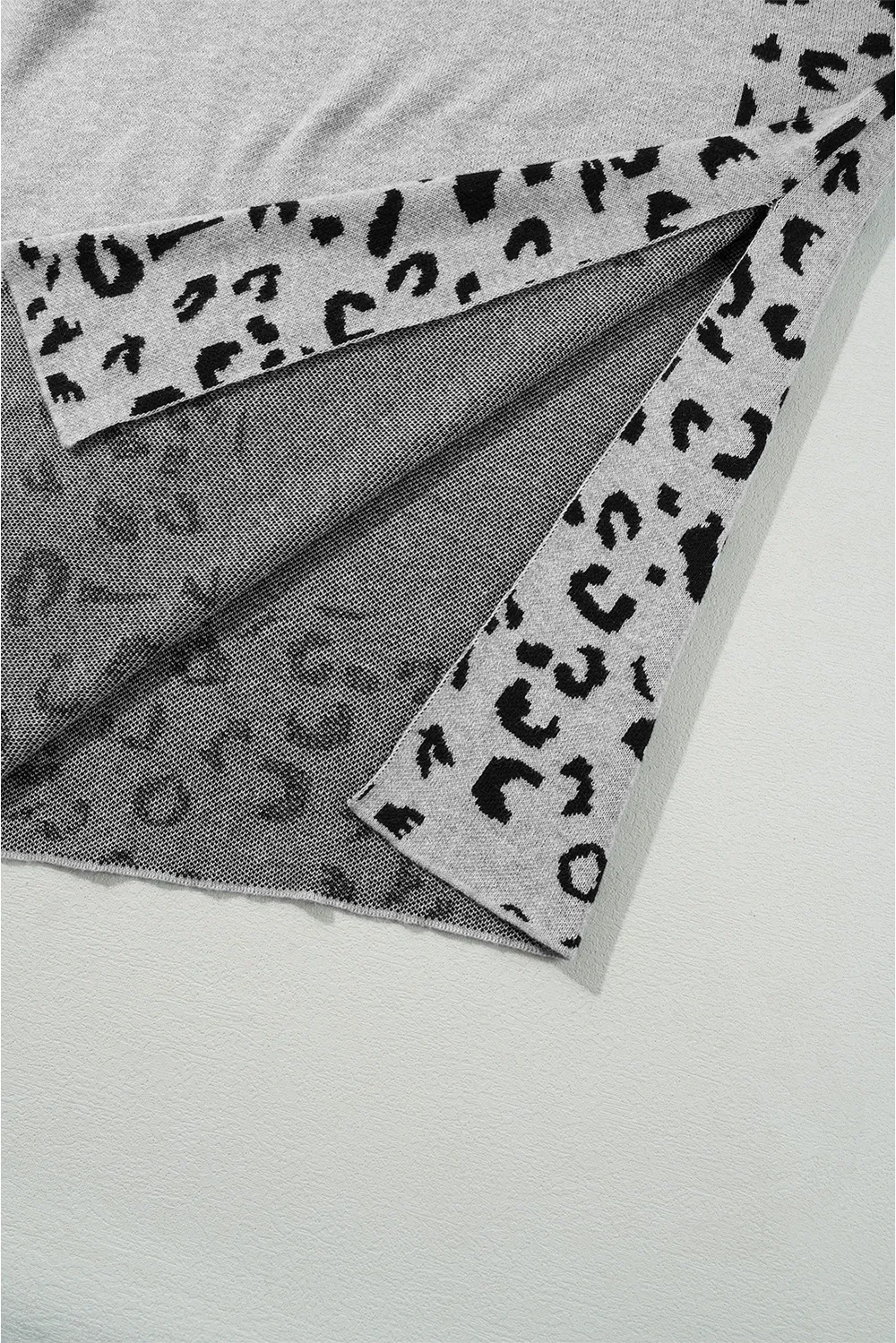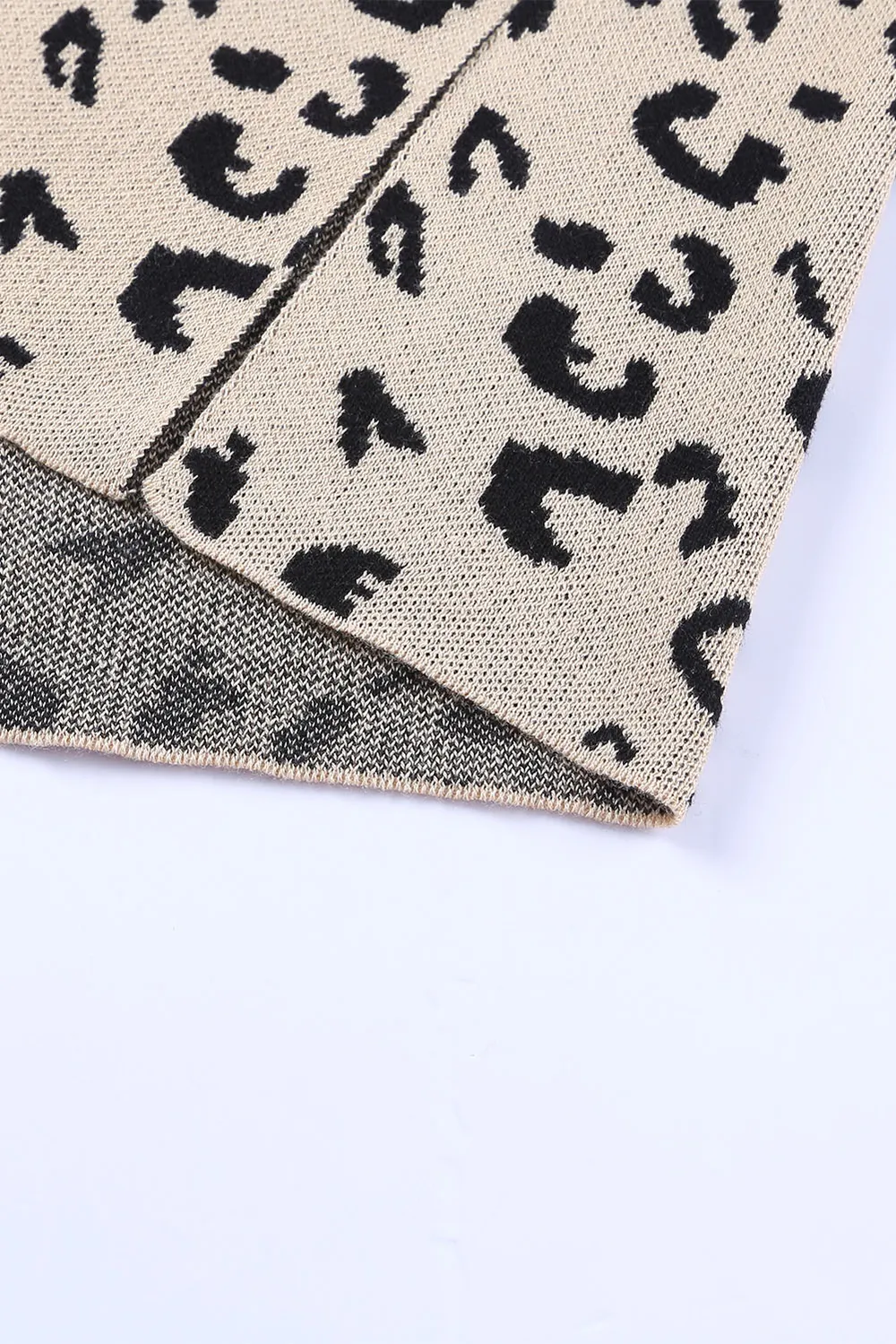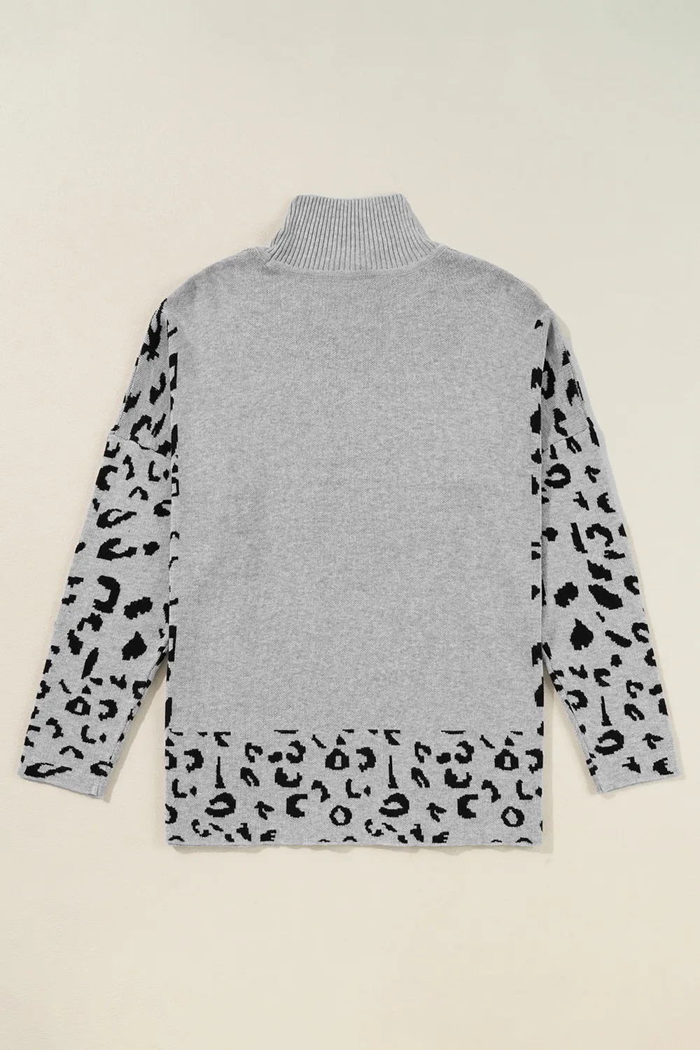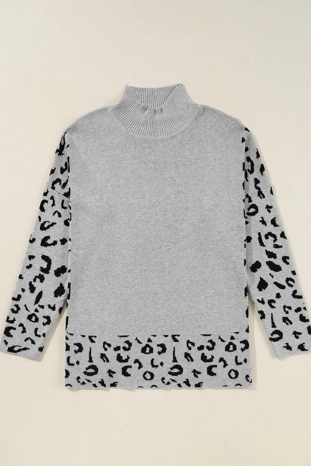 Slit Leopard Mock Neck Dropped Shoulder Sweater