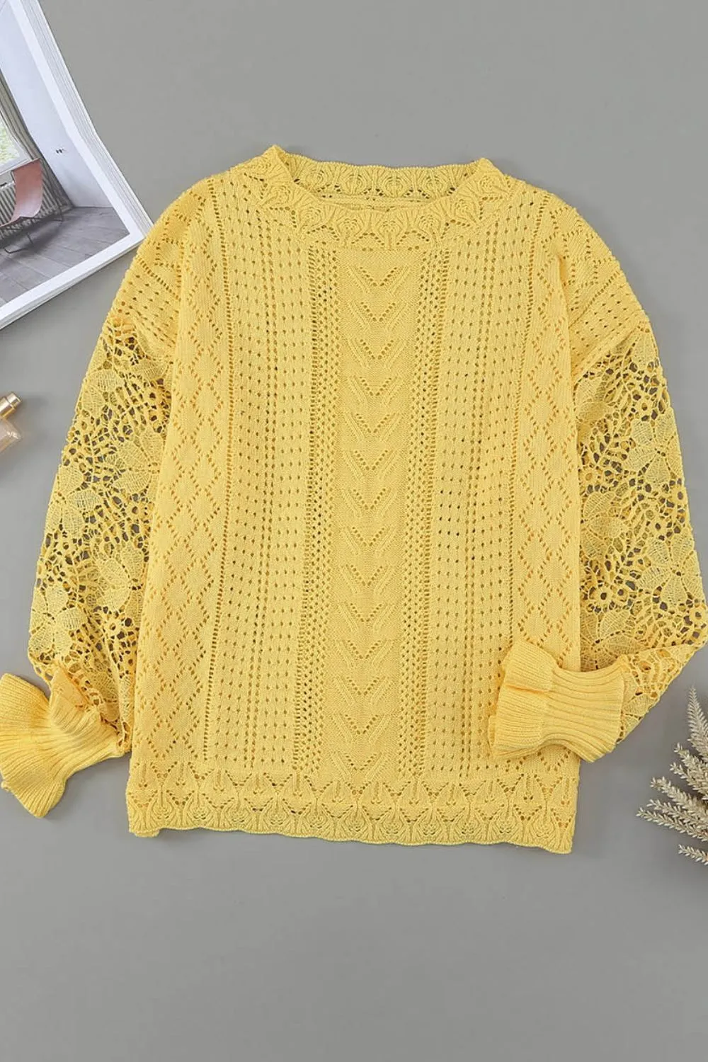 Openwork Round Neck Long Sleeve Sweater