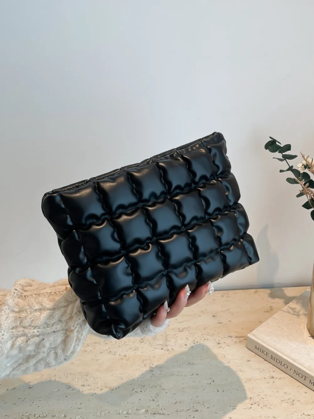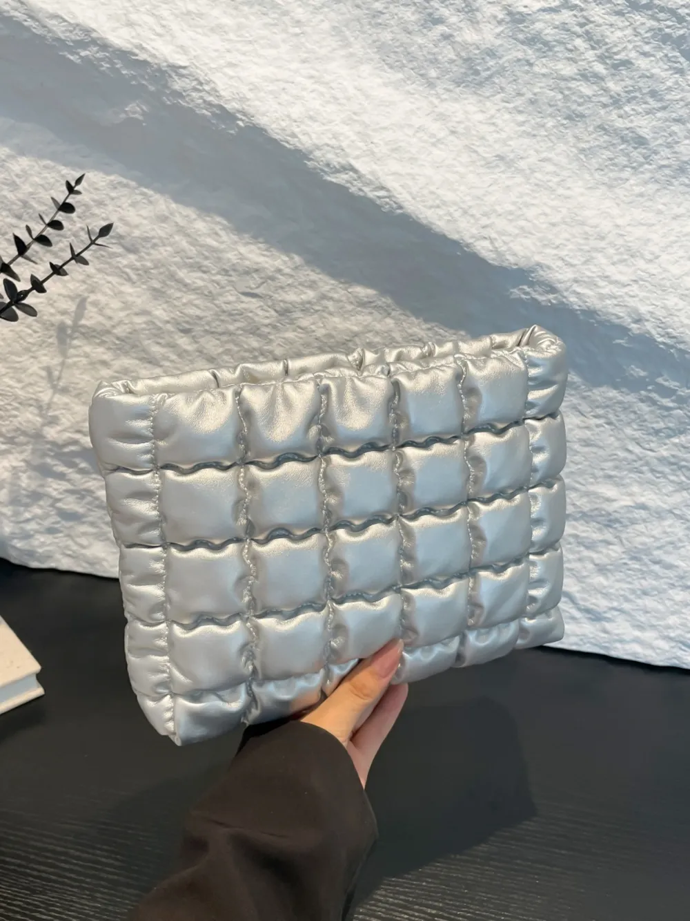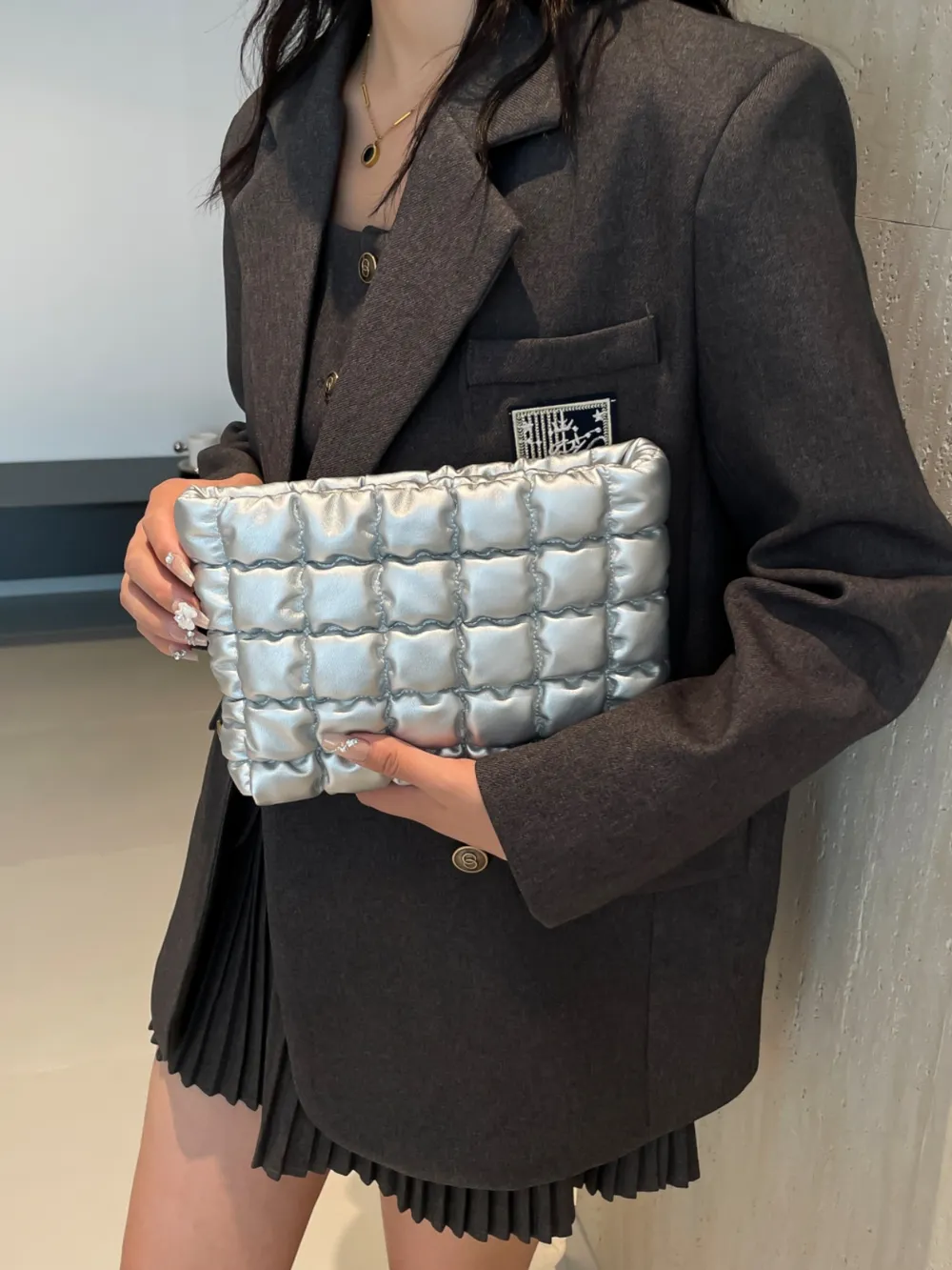 Quilted Plaid Clutch with Zipper