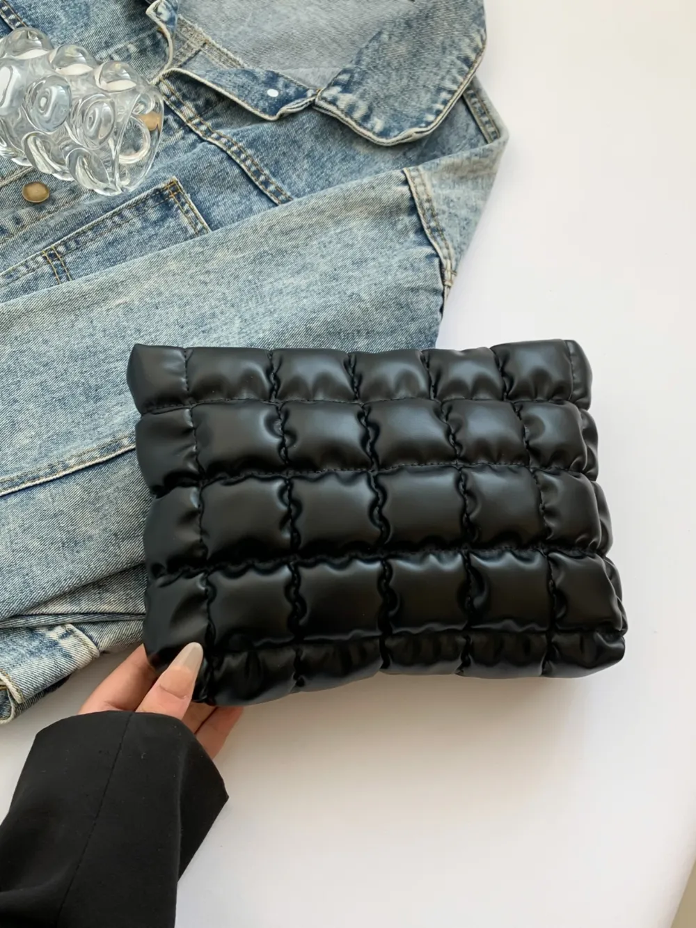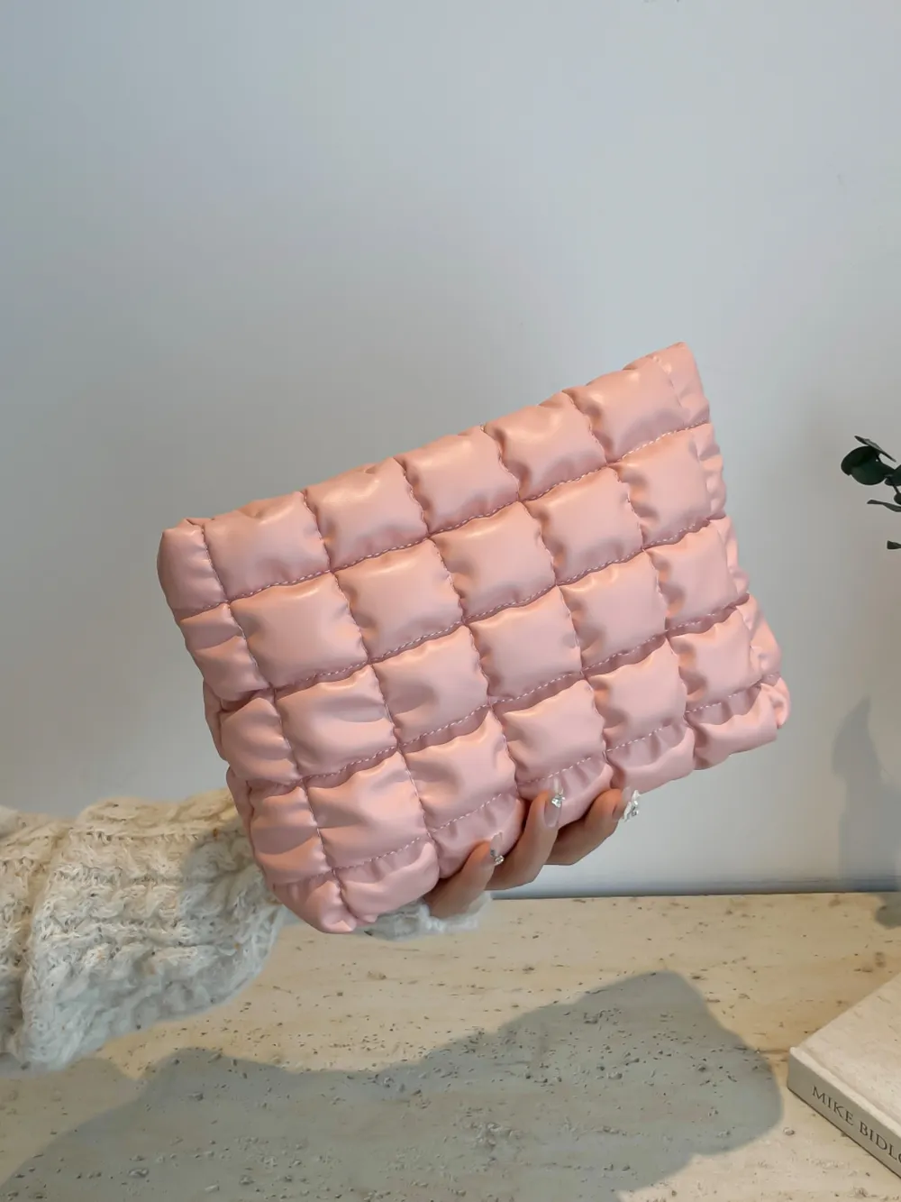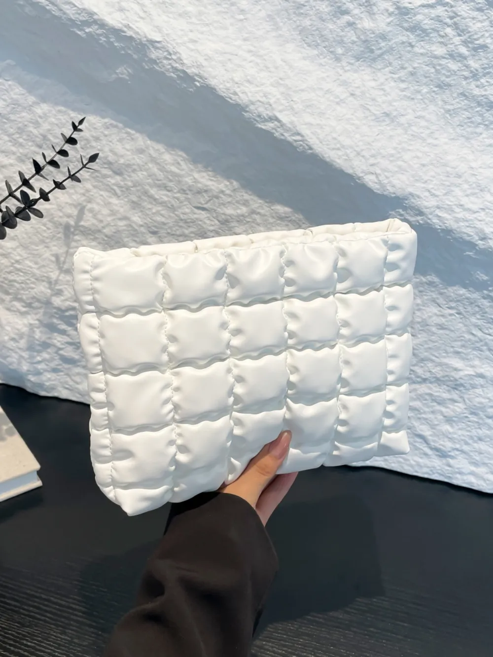Quilted Plaid Clutch with Zipper