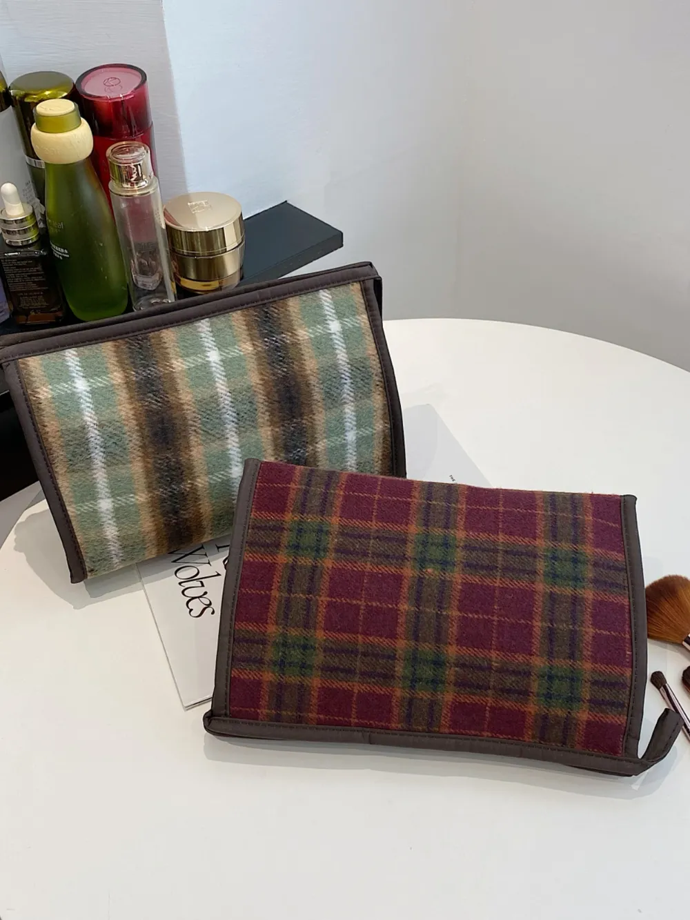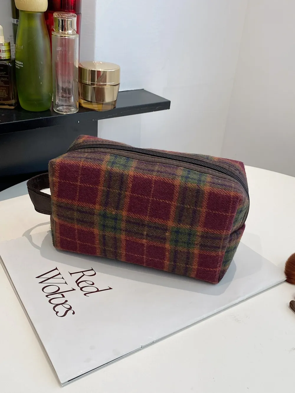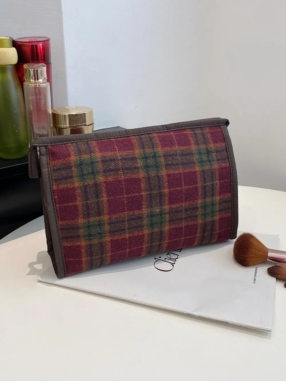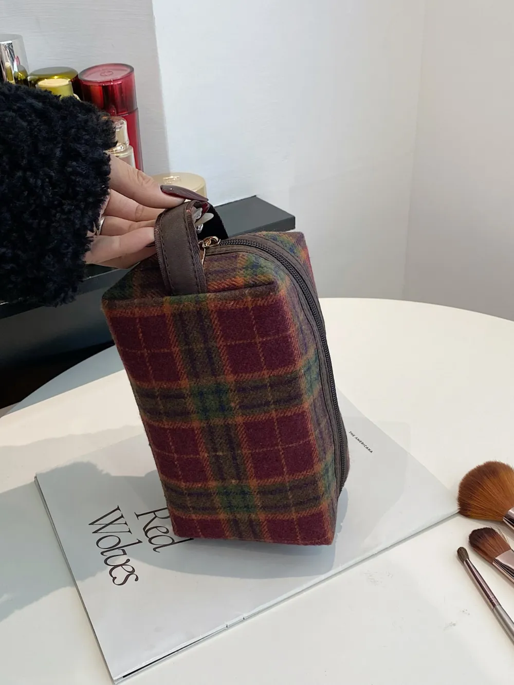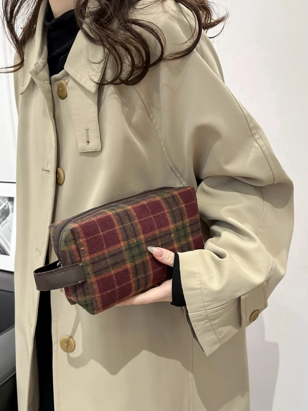 Contrast Plaid Clutch with Zipper