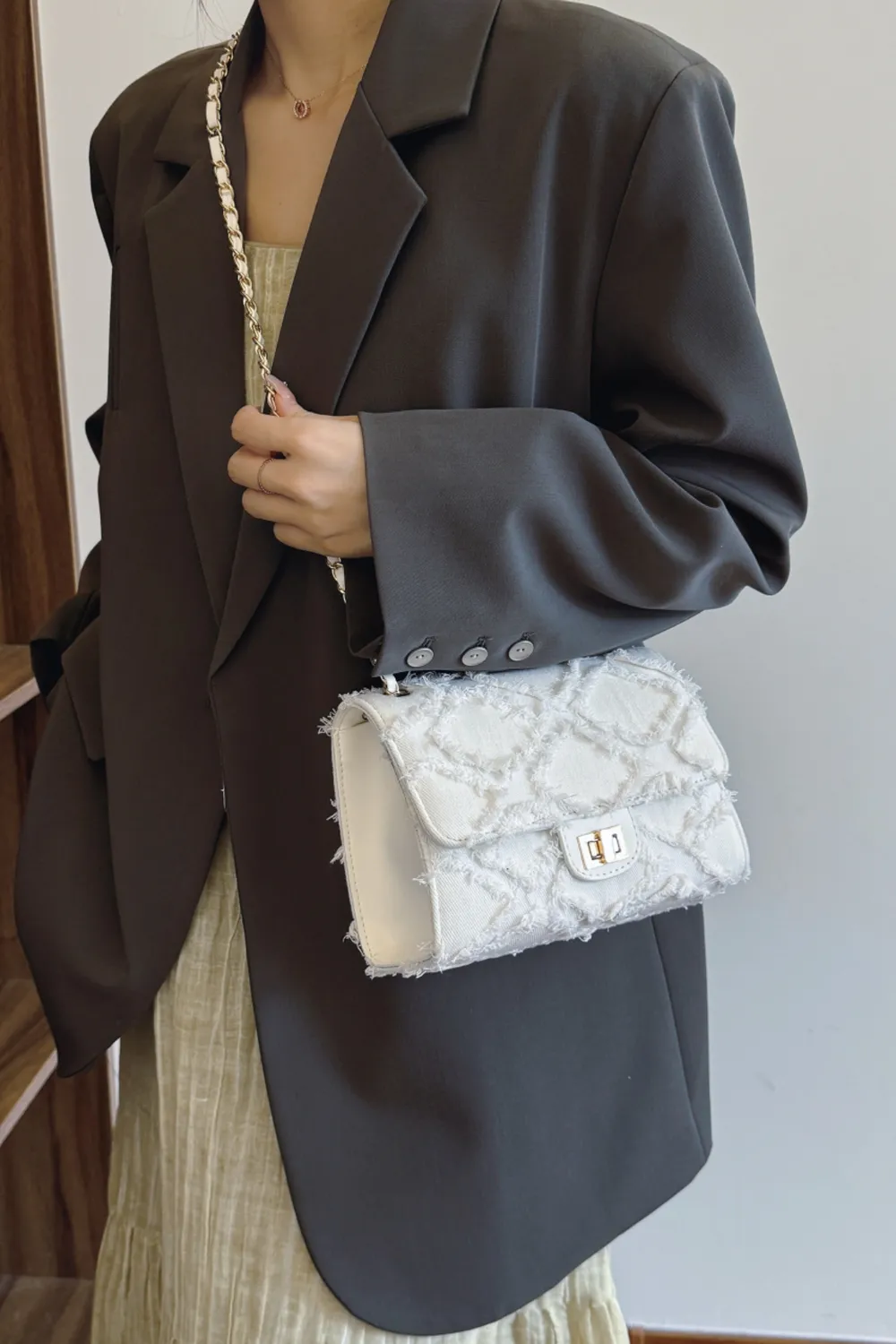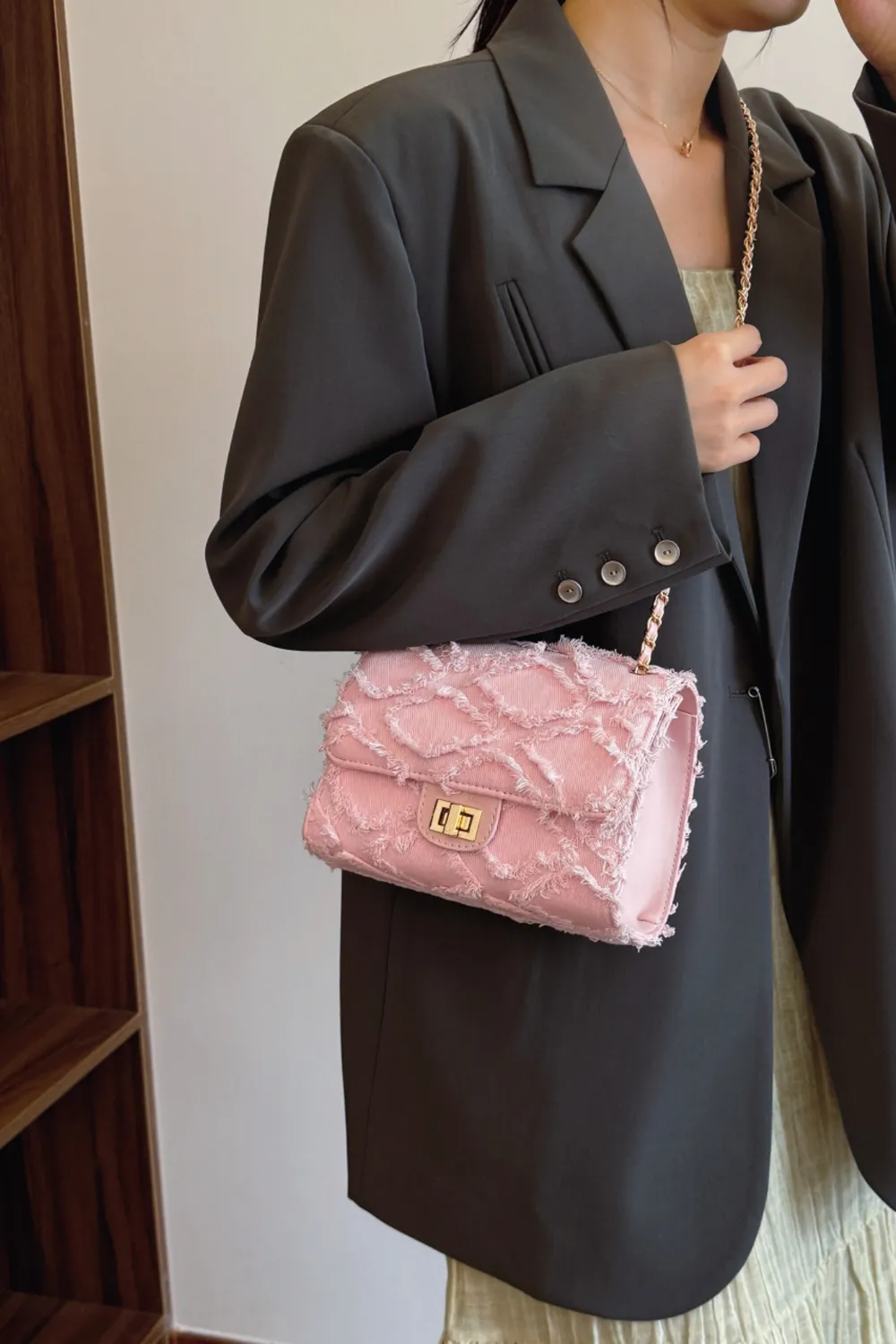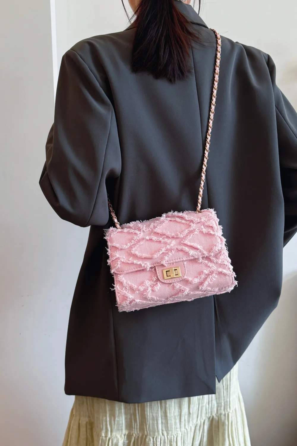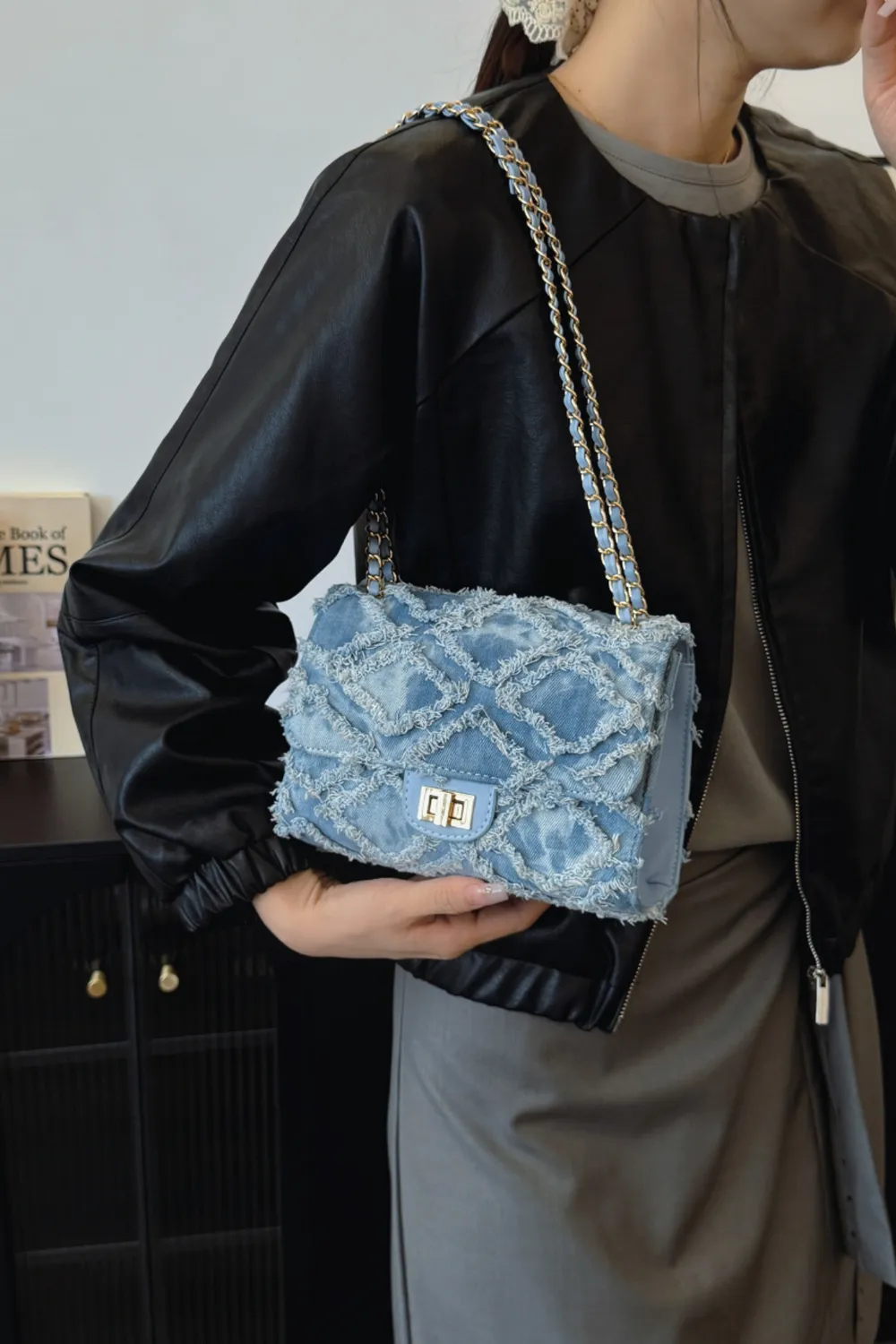 Raw Hem Denim Crossbody Bag