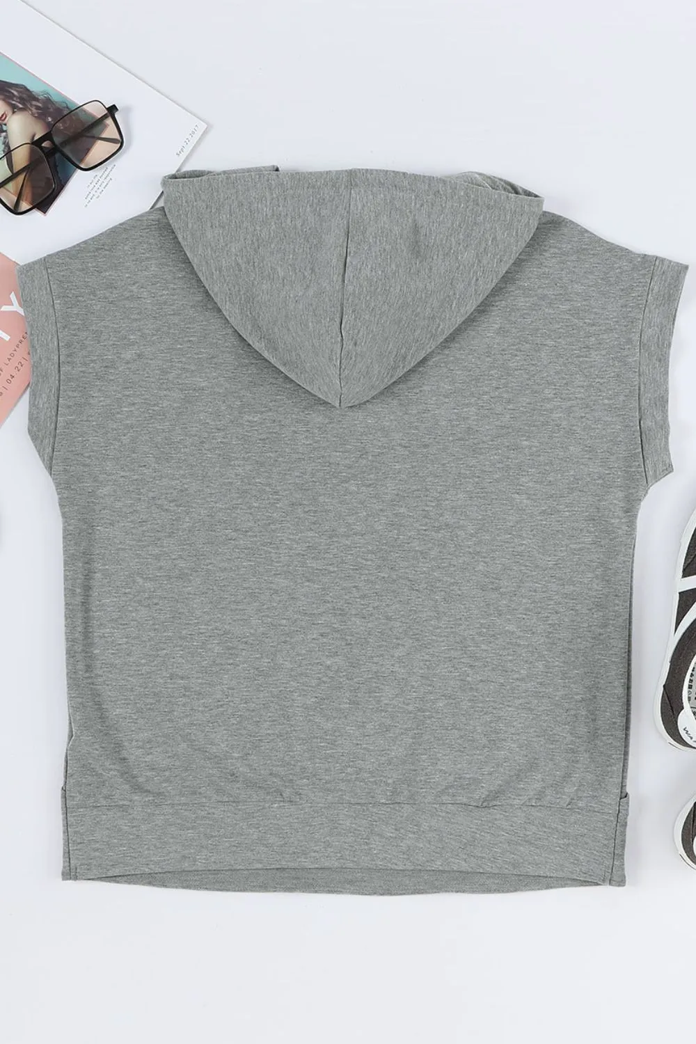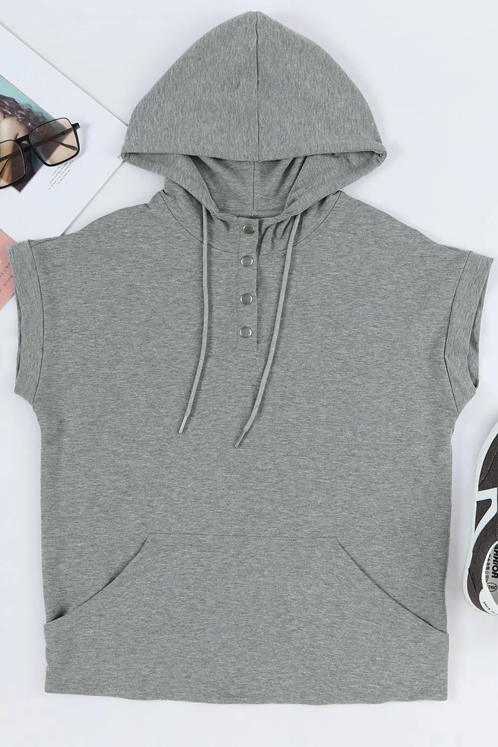 Drawstring Quarter Snap Cap Sleeve Hoodie