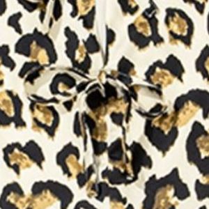 Leopard Bow Tie Front Puff Sleeve Peplum Blouse