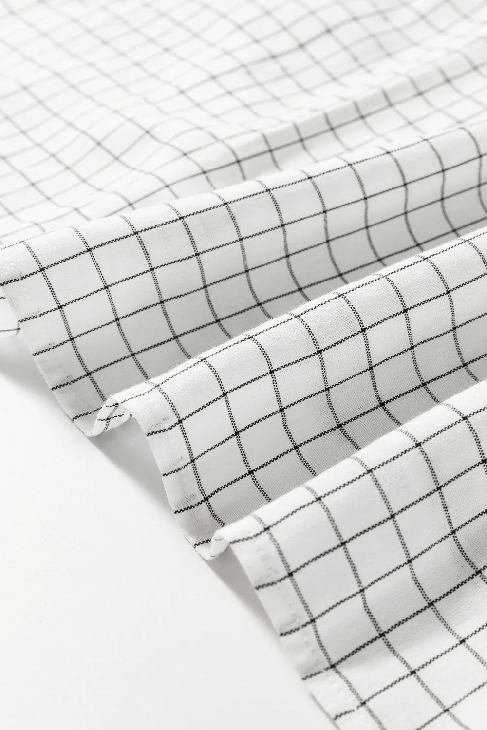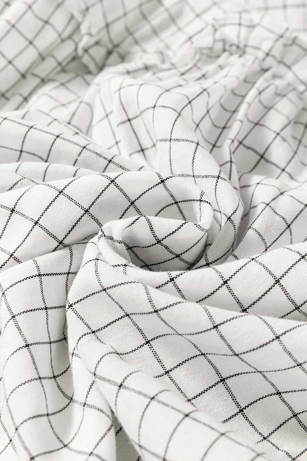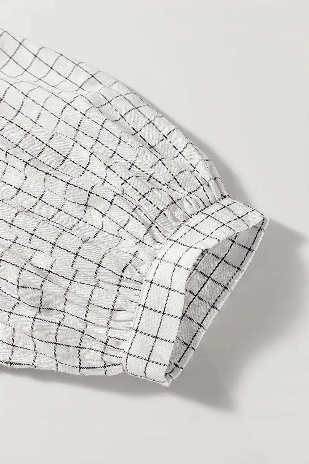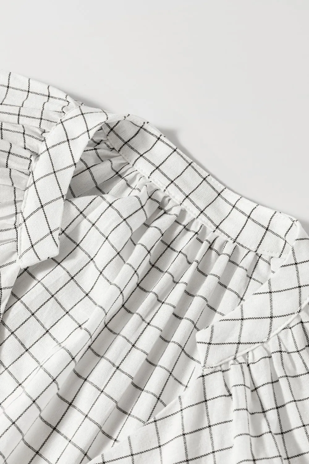 Frill Plaid Notched Balloon Sleeve Mini Dress