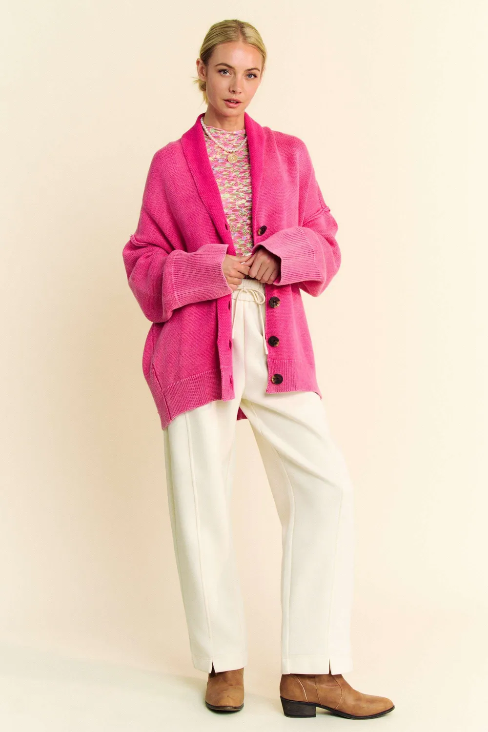Davi & Dani Shawl Collar Ribbed Detail Button Up Cardigan