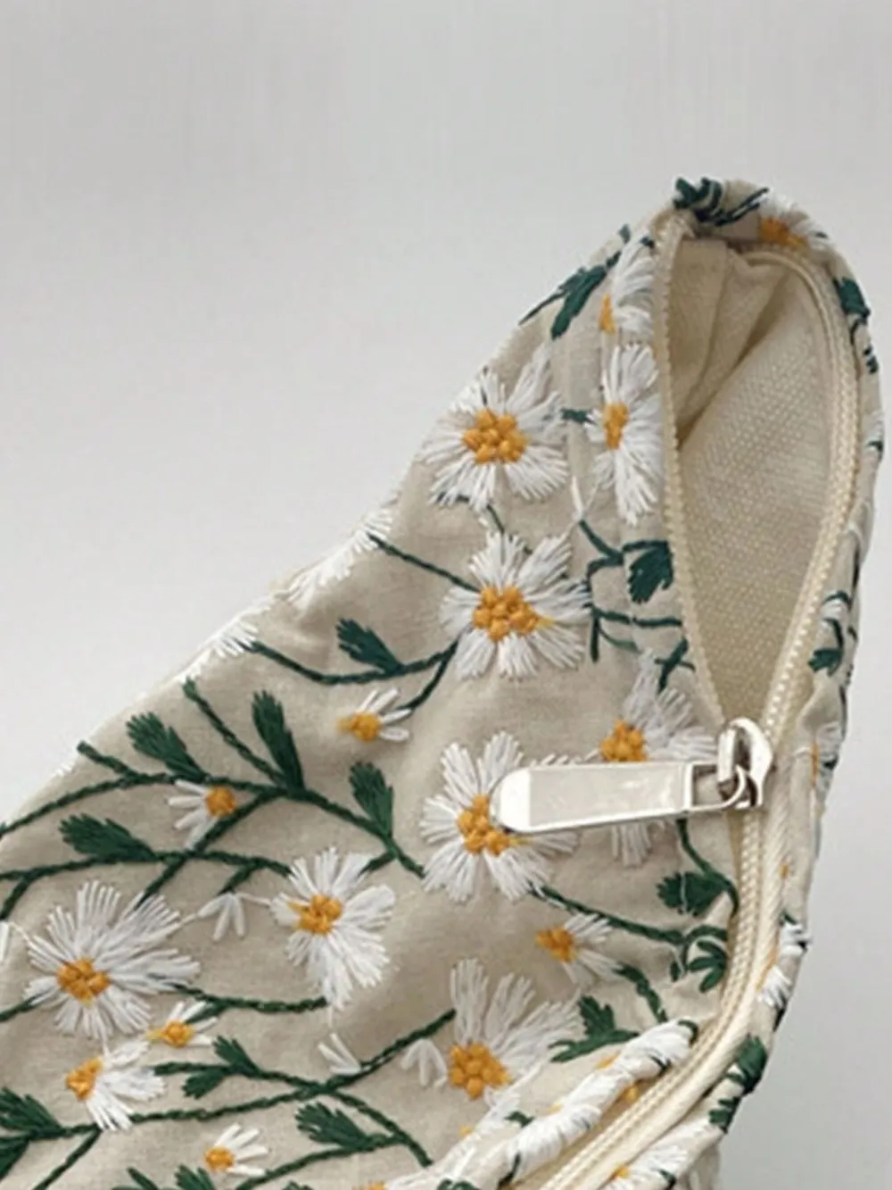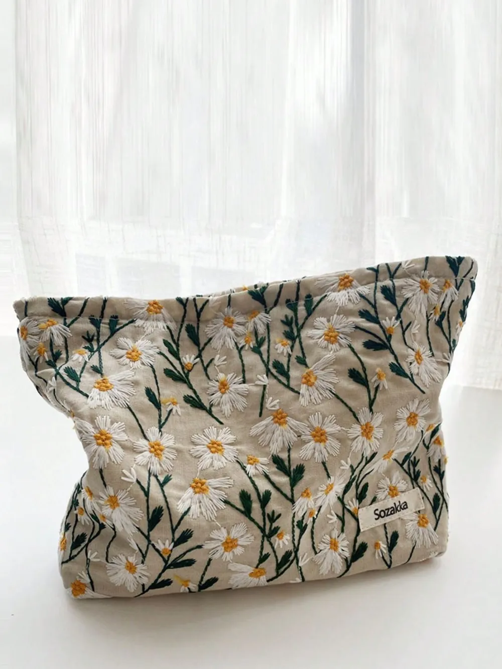 Daisy Embroidered Cosmetic Pouch