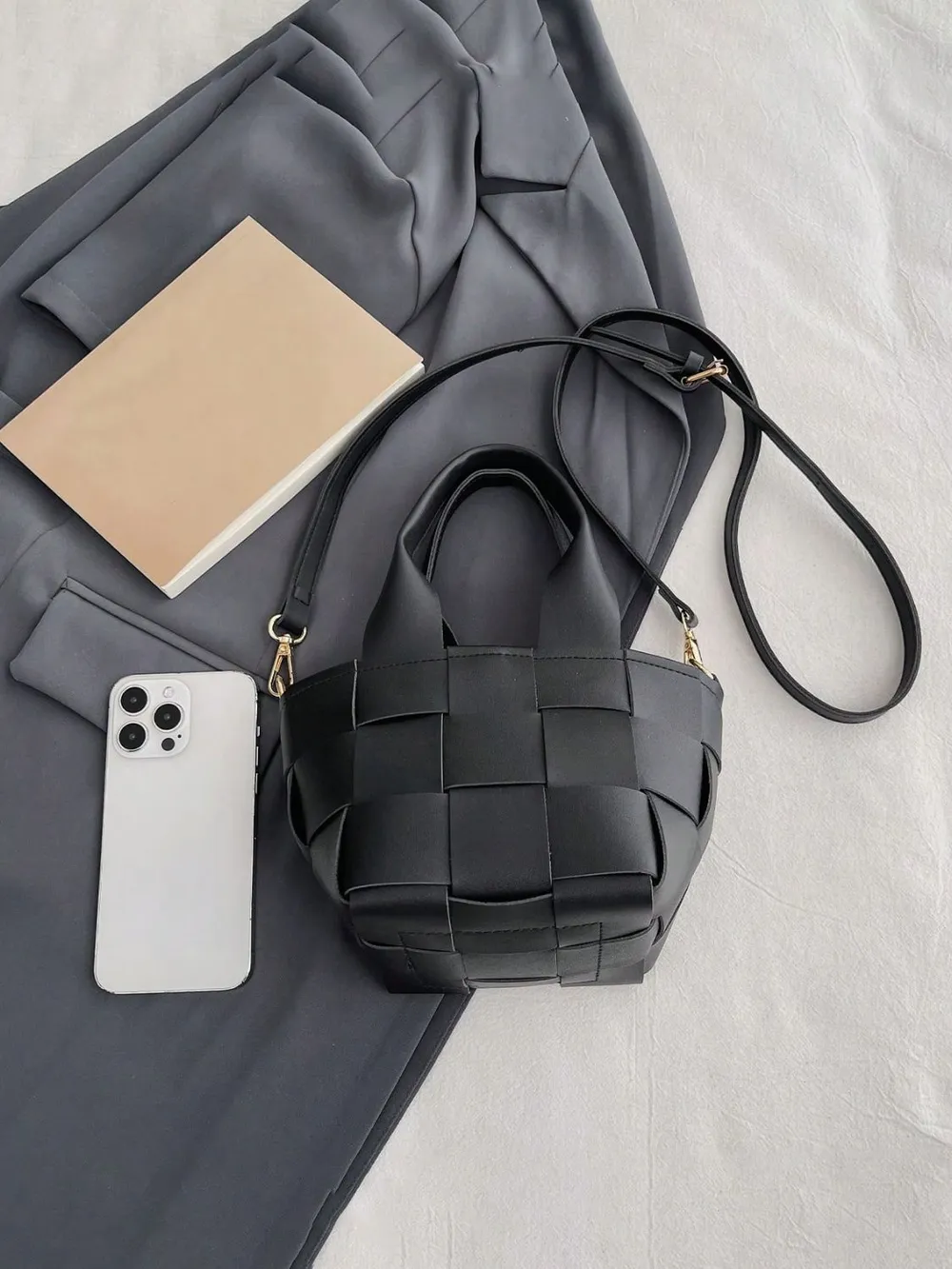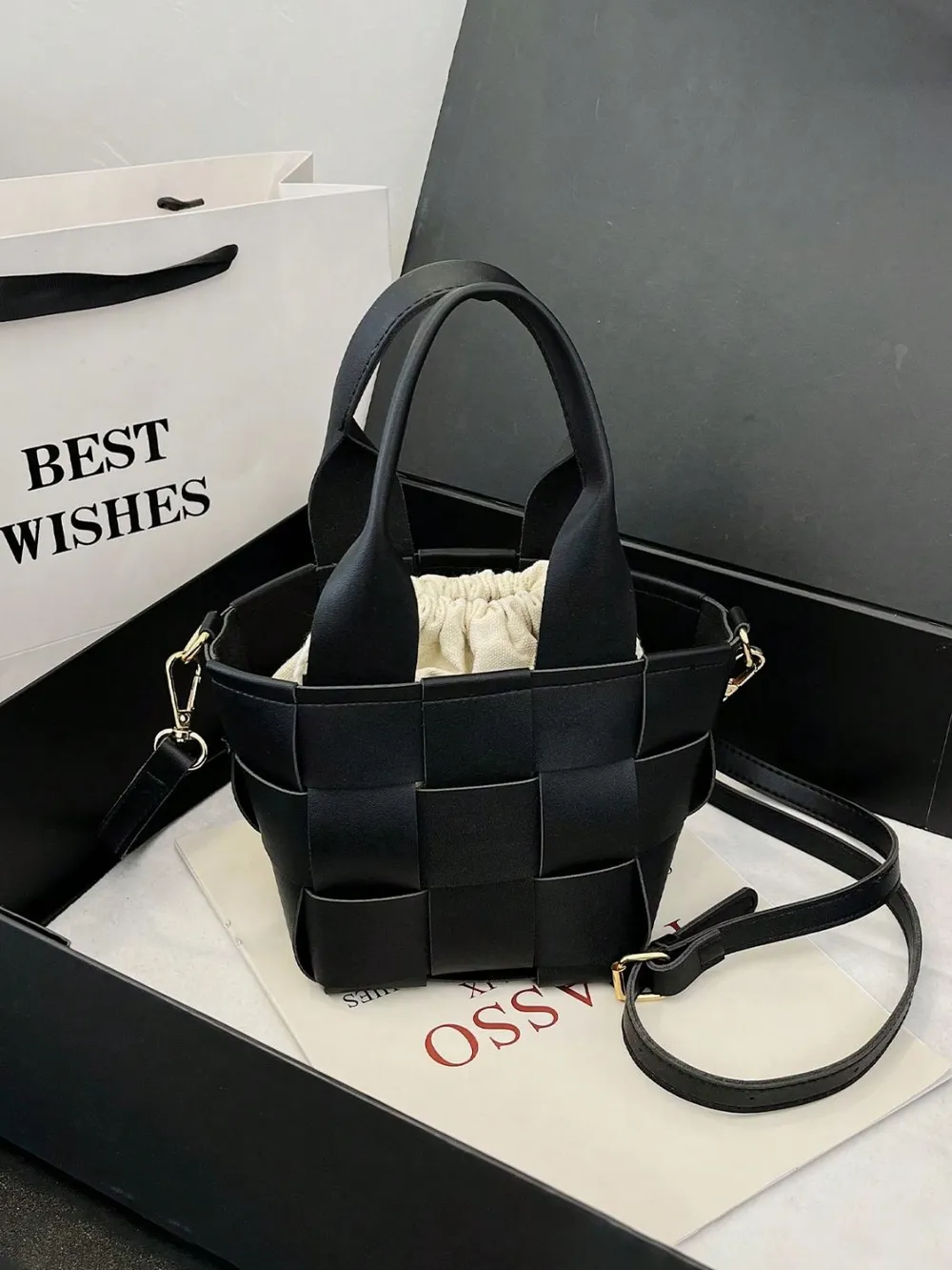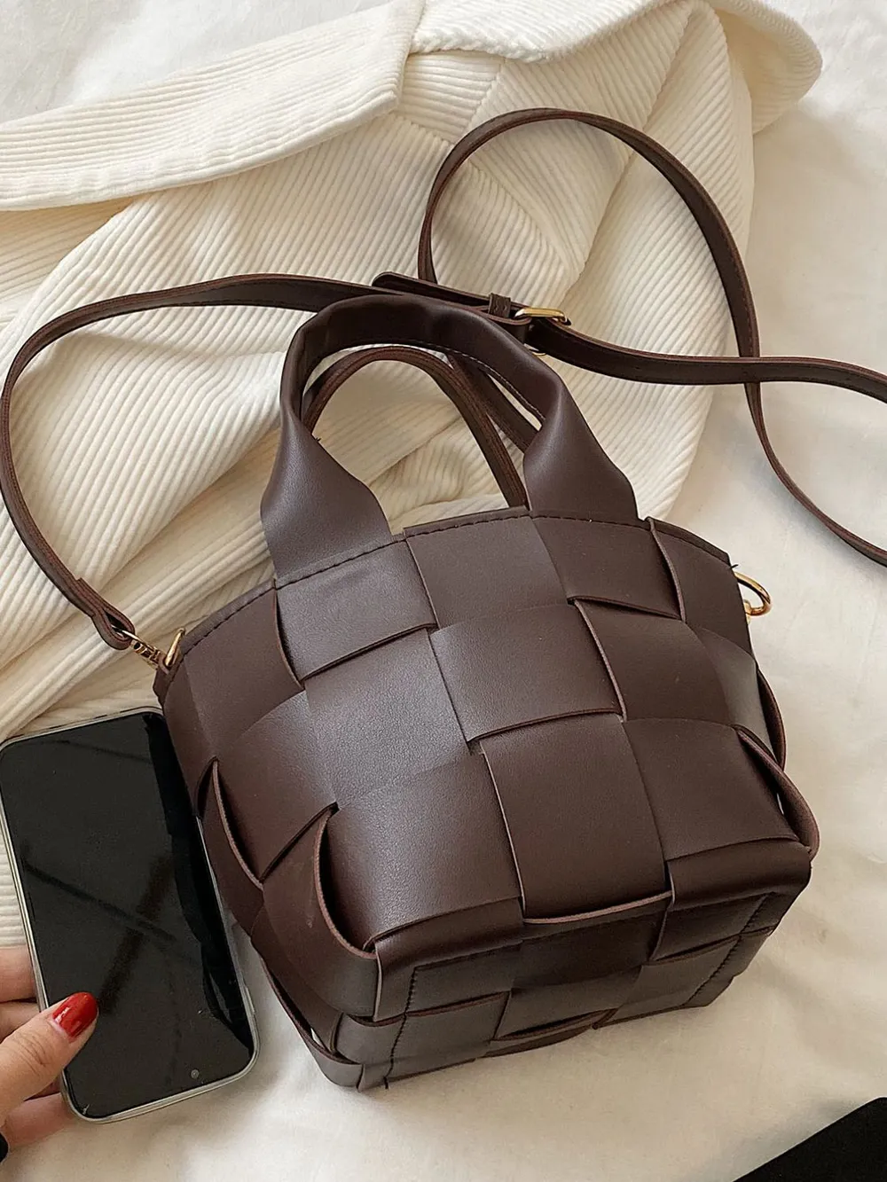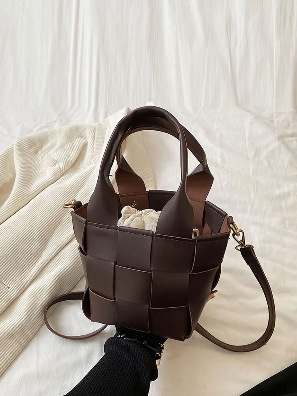 PU Leather Braided Bucket Bag