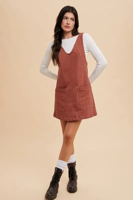 Detailed description of the Annie Wear V-Neck Adjustable Strap Denim Overall Dress with Pockets, highlighting quality, design, and unique features that make it appealing to end consumers.