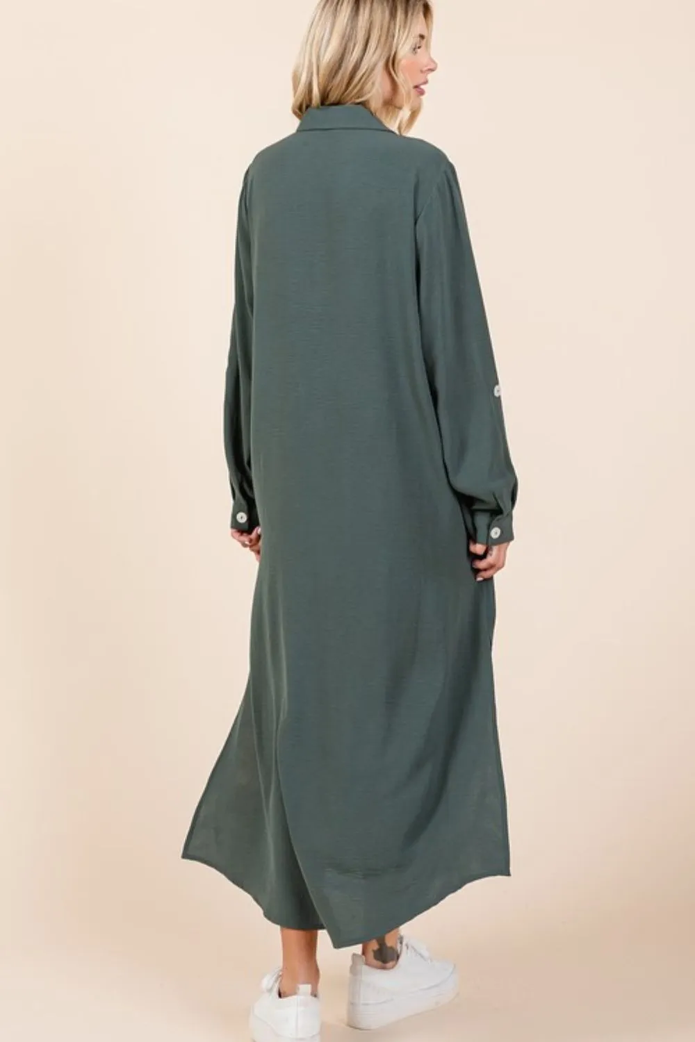 Detailed description of the Mittoshop Airflow V-Neck Long Sleeve Button Down Maxi Dress, highlighting quality, design, and unique features that make it appealing to end consumers.