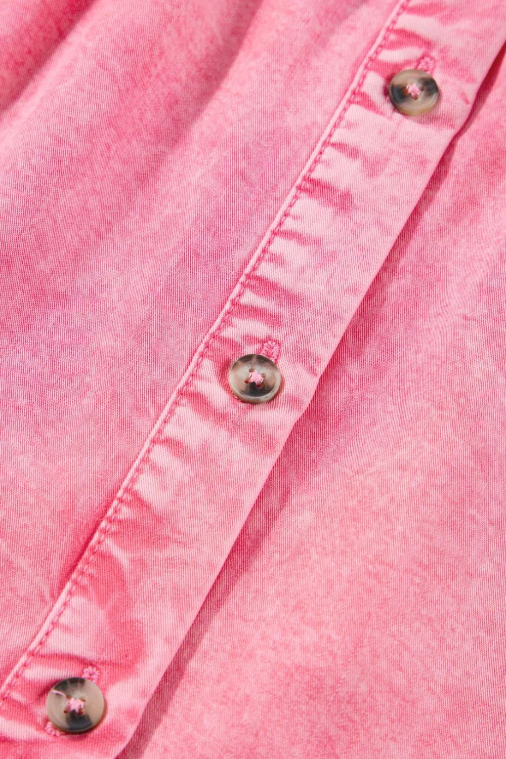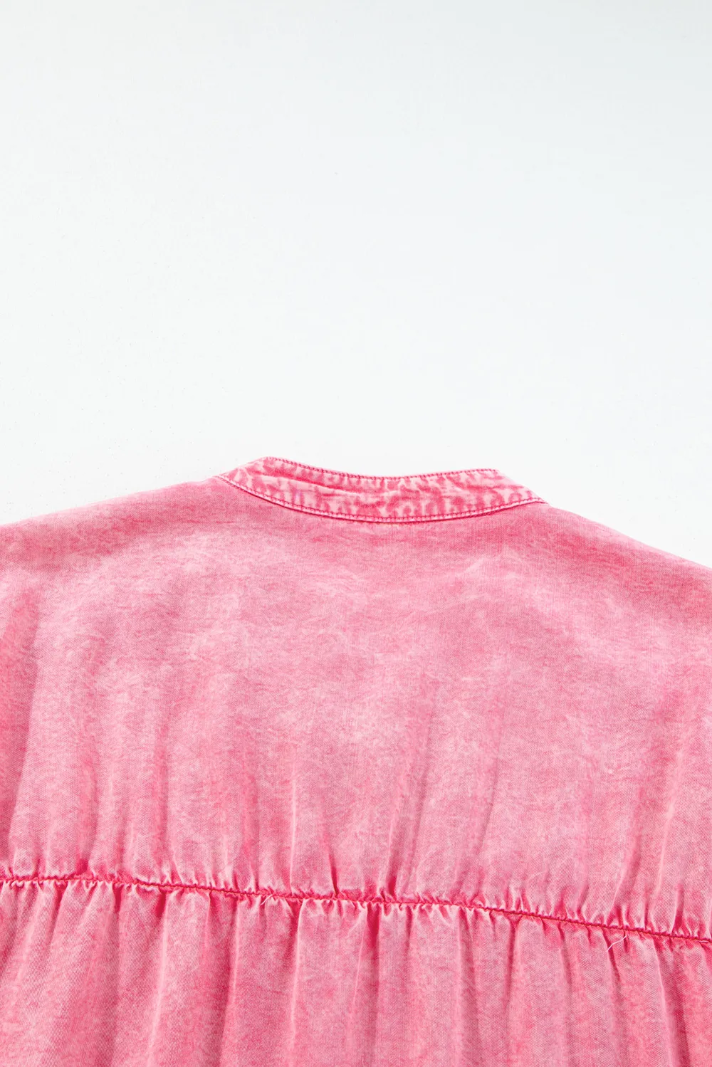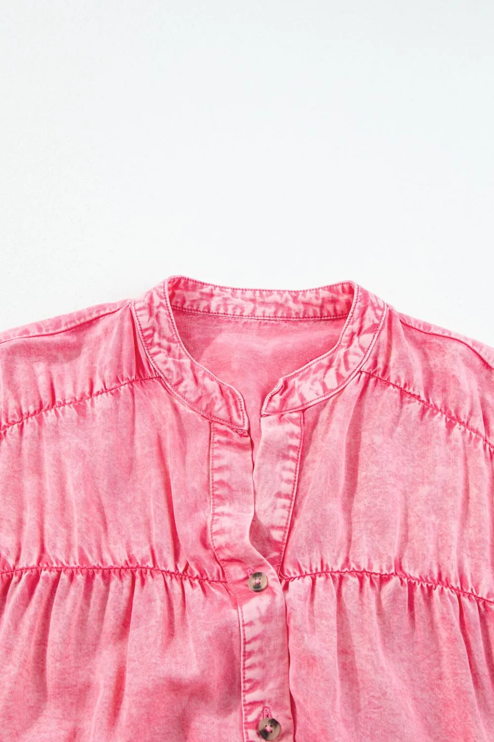 Ruffled Short Sleeve Buttoned Denim Mini Dress