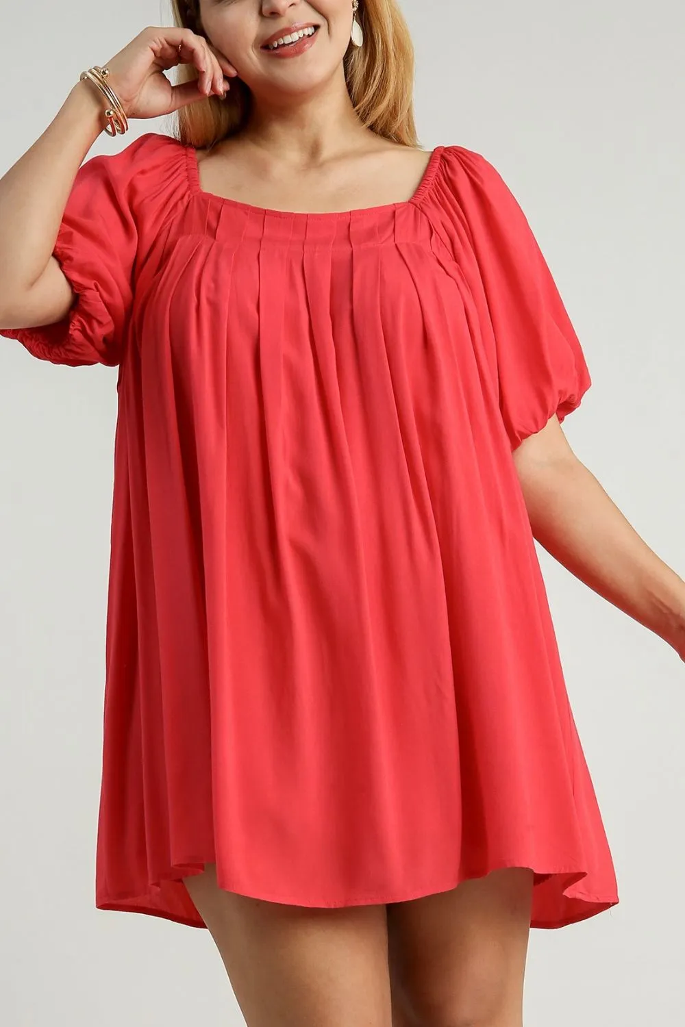 Umgee Full Size Squared Neck Puff Sleeve Mini Dress Plus Size