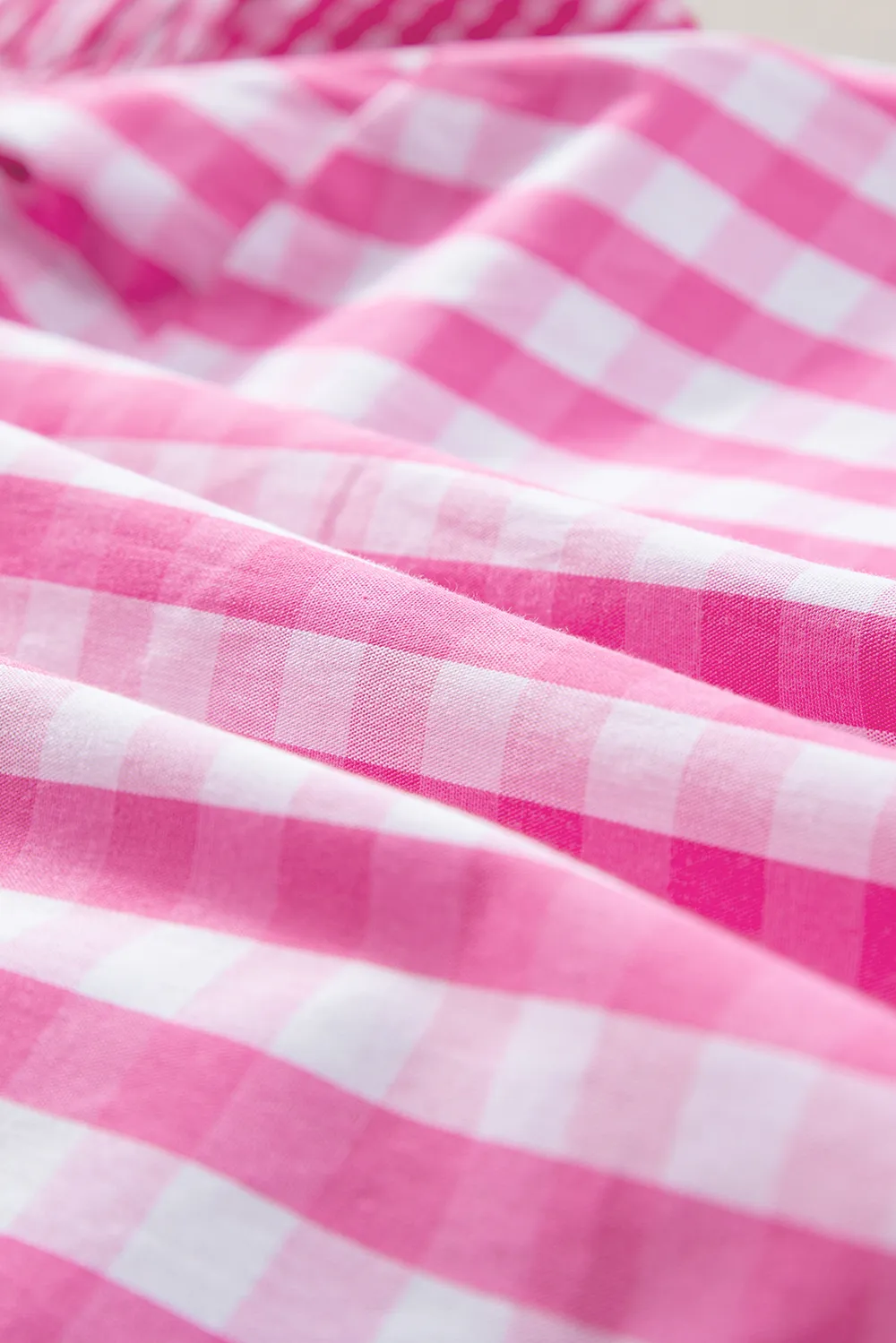 Checkered Ruffled Sleeve Frilled Neck Blouse