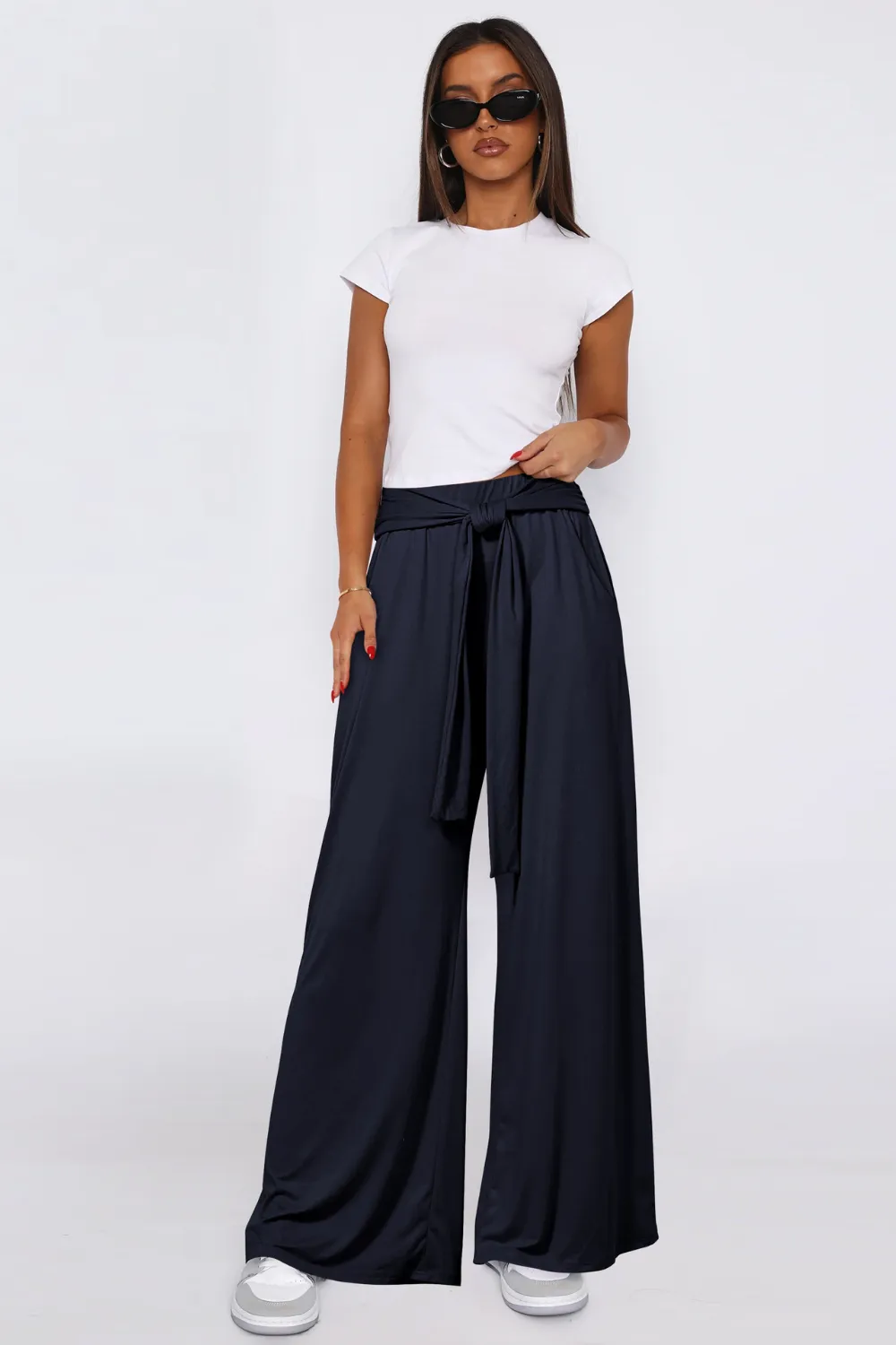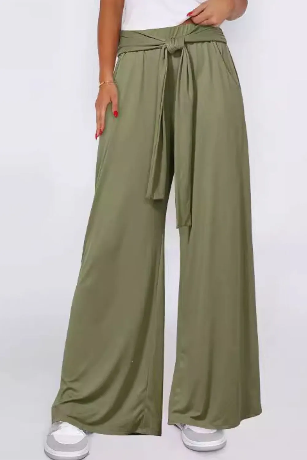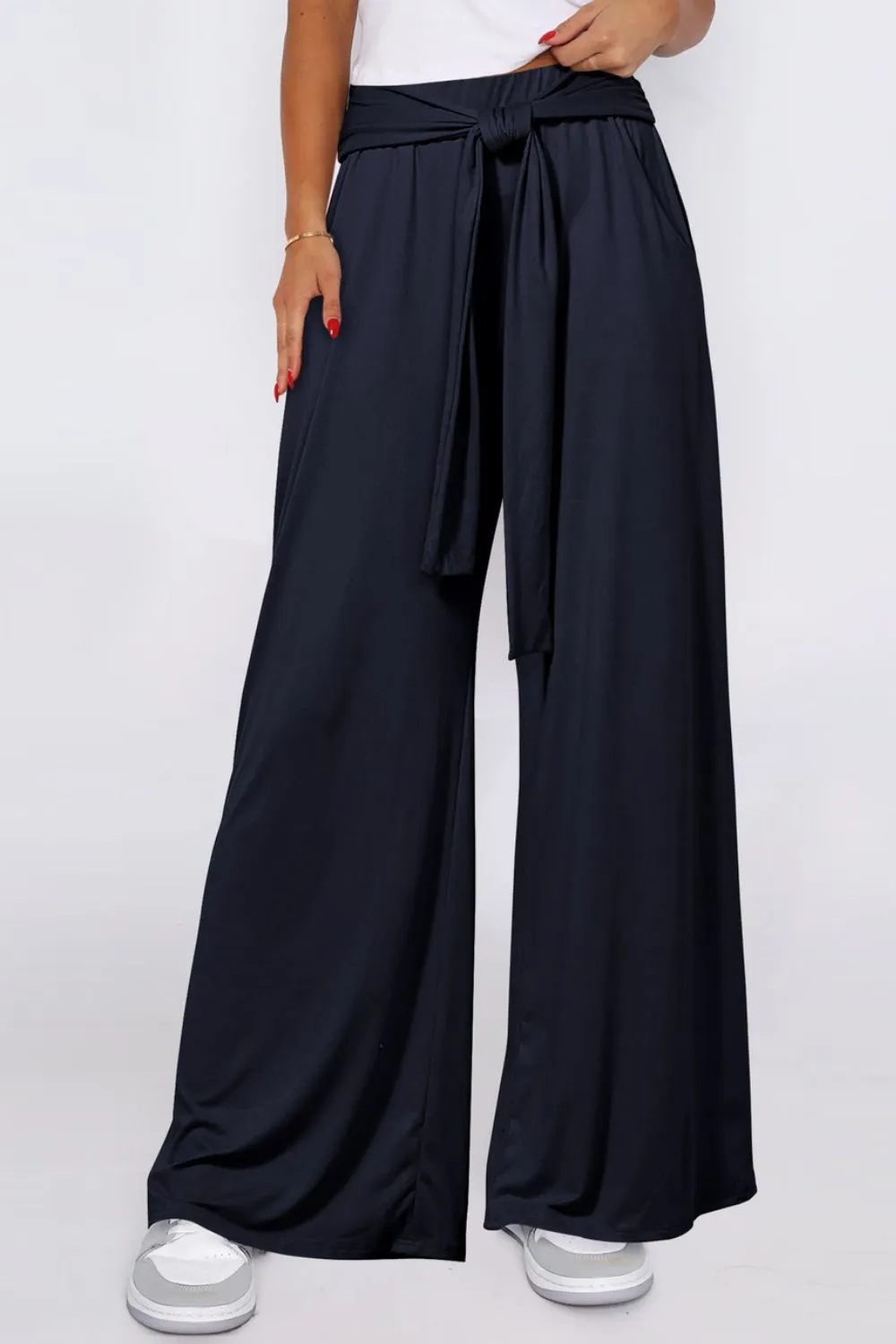 Tied Wide Leg Pants with Pockets