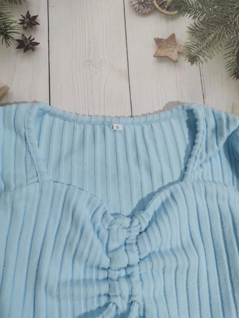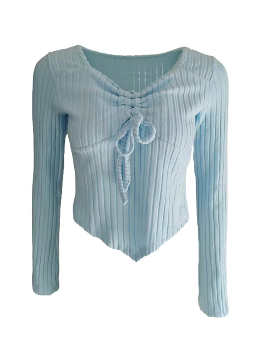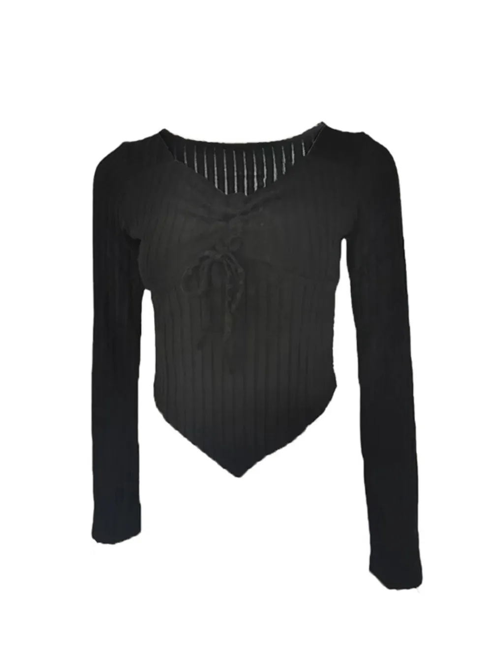 Drawstring Ruched Long Sleeve Ribbed Top