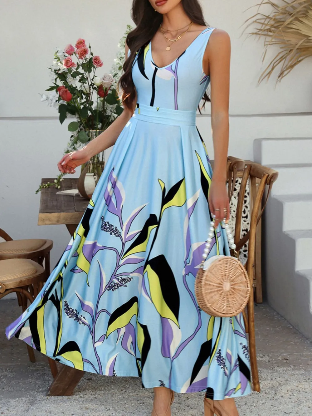Devine Printed Sleeveless Maxi Dress