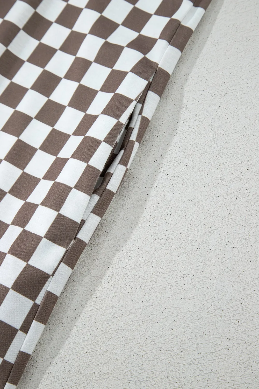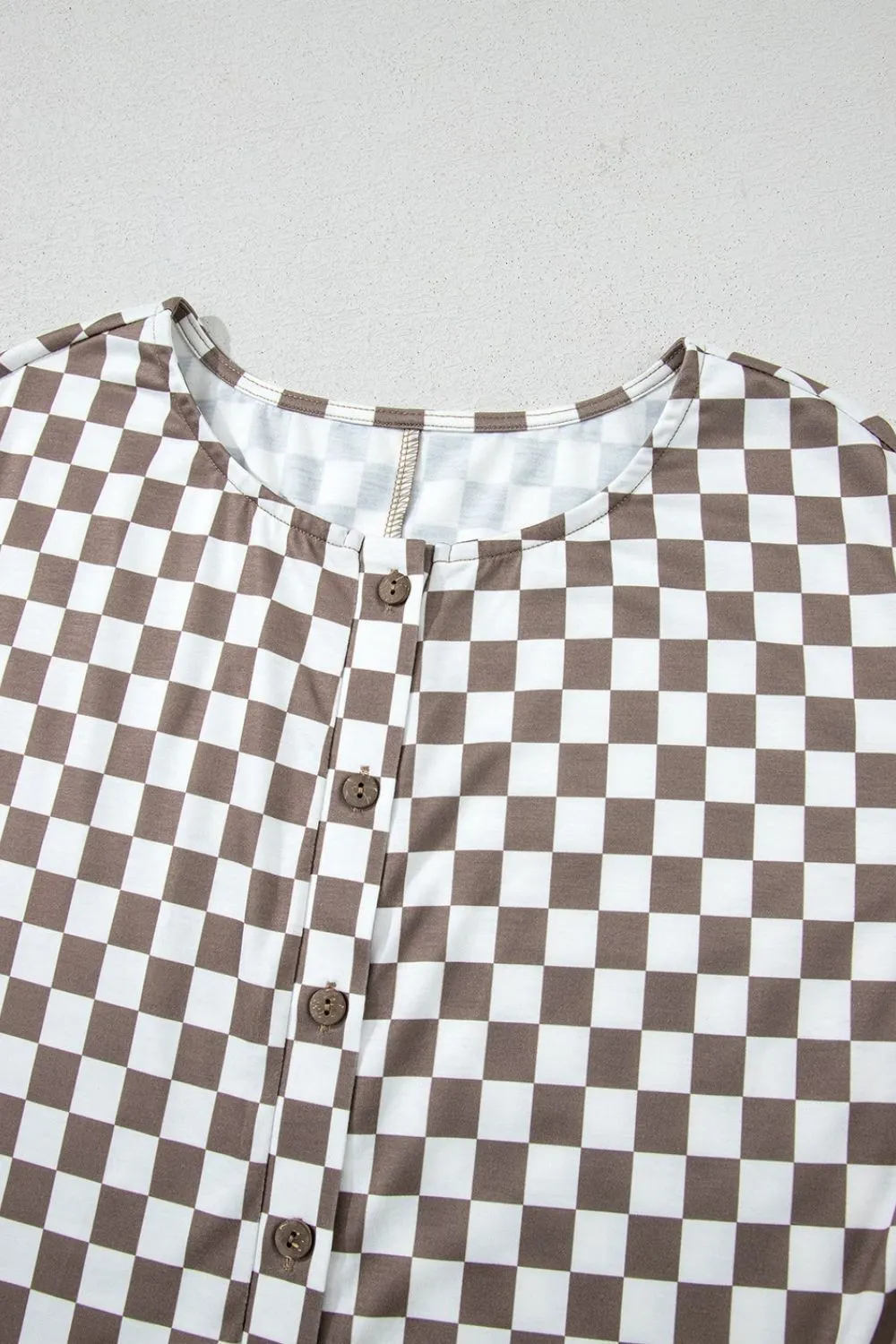 Checkered Print Crew Neck Wide Leg Jumpsuit