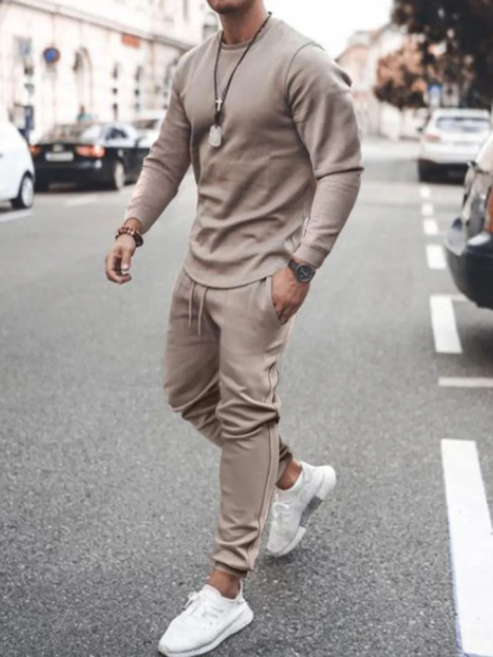 Men's Full Size Round Neck Long Sleeve Top and Pants Set Plus Size