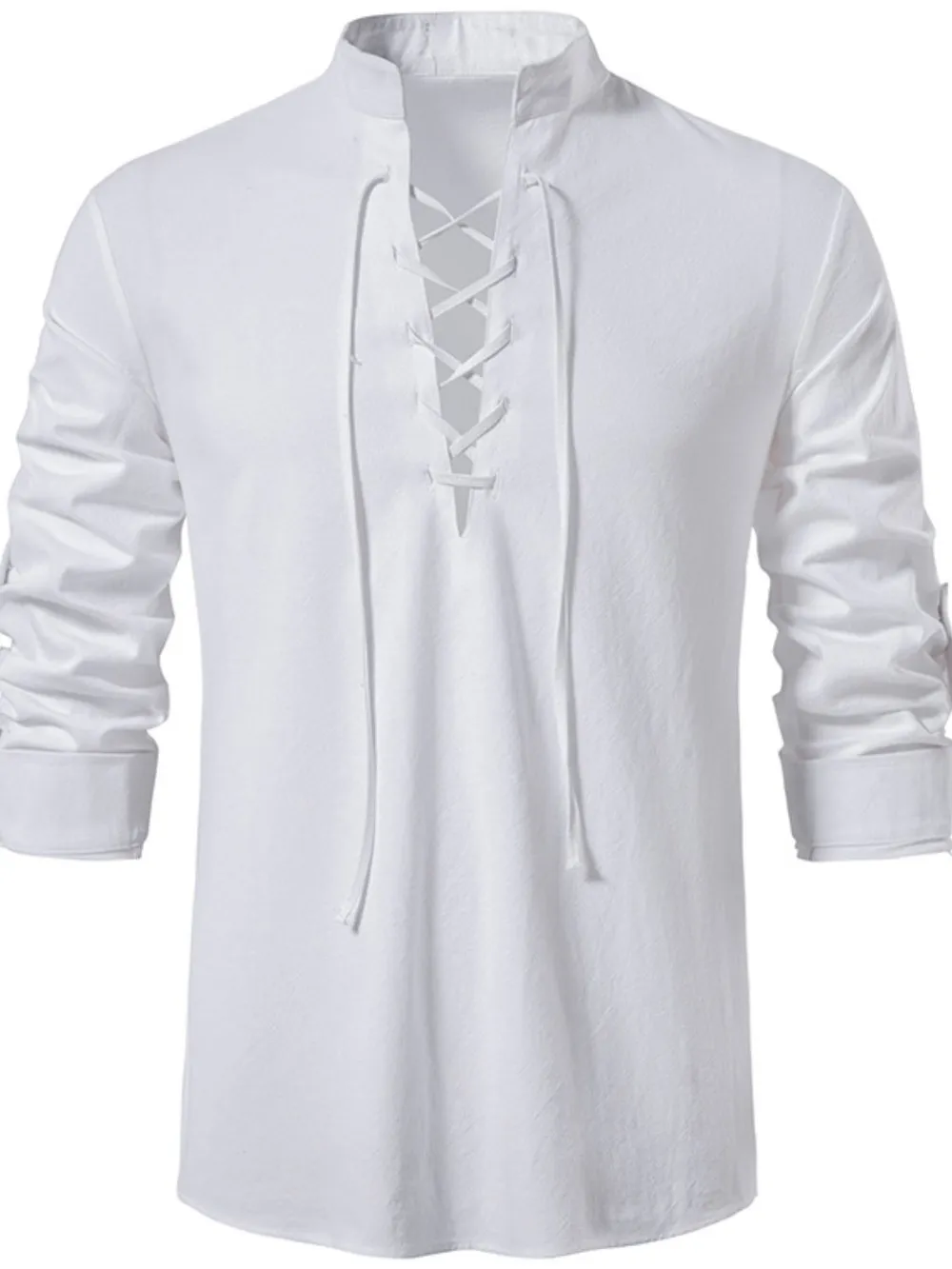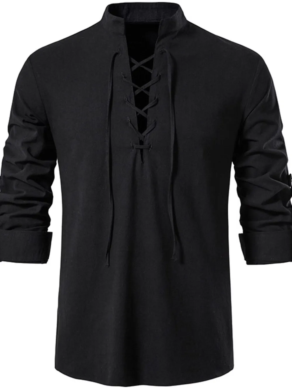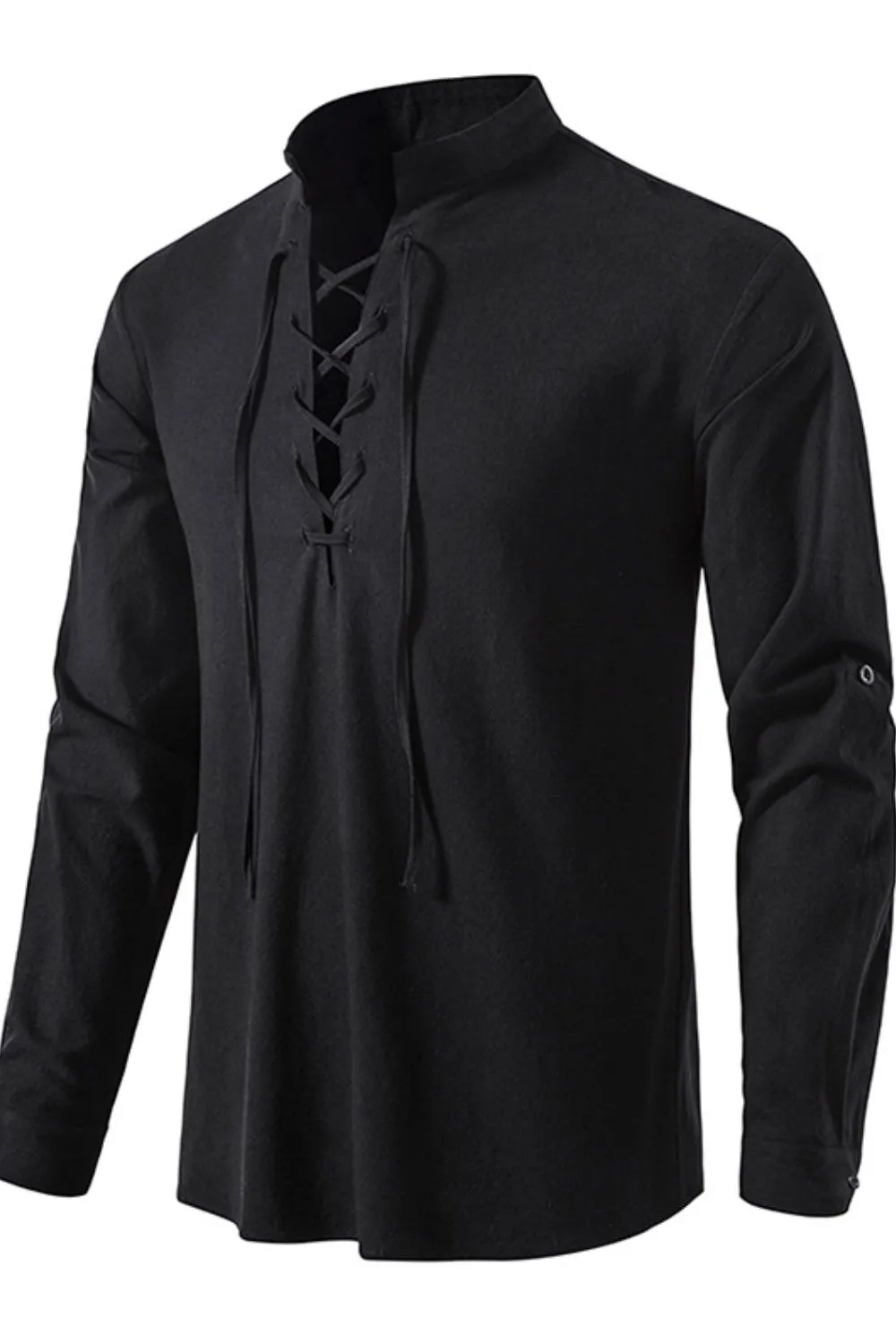 Men's Lace Up Long Sleeve Polo